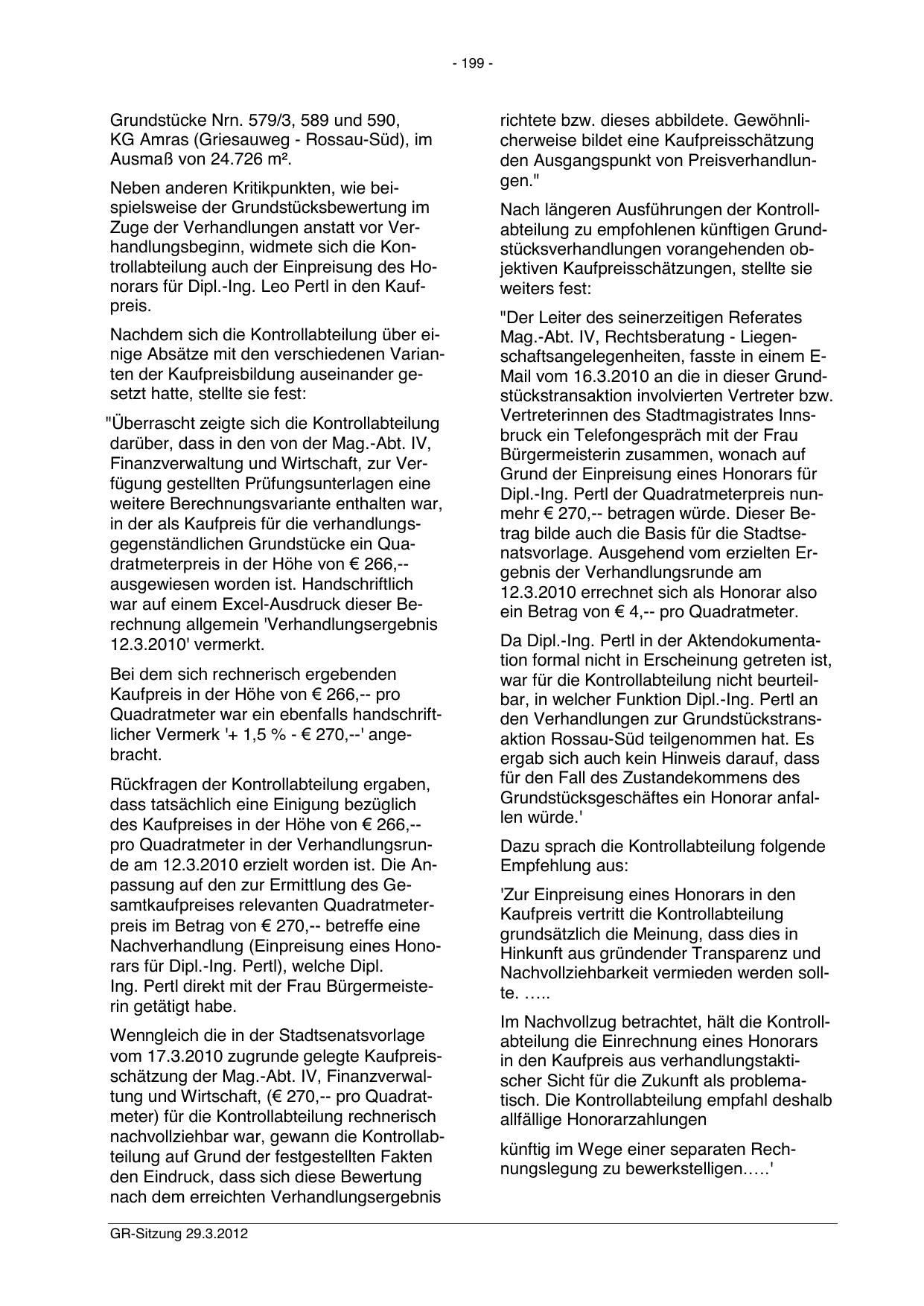 Dipl.-Ing. Pertl der Quadratmeterpreis nunmehr € 270,-- betragen würde. Dieser Betrag bilde auch die Basis für die Stadtsenatsvorlage. Ausgehend vom erzielten Ergebnis der Verhandlungsrunde am