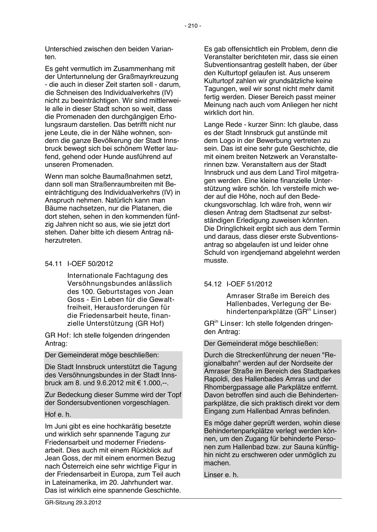 des Versöhnungsbundes in der Stadt Innsbruck am 8. und 9.6.2012 mit € 1.000,--.
