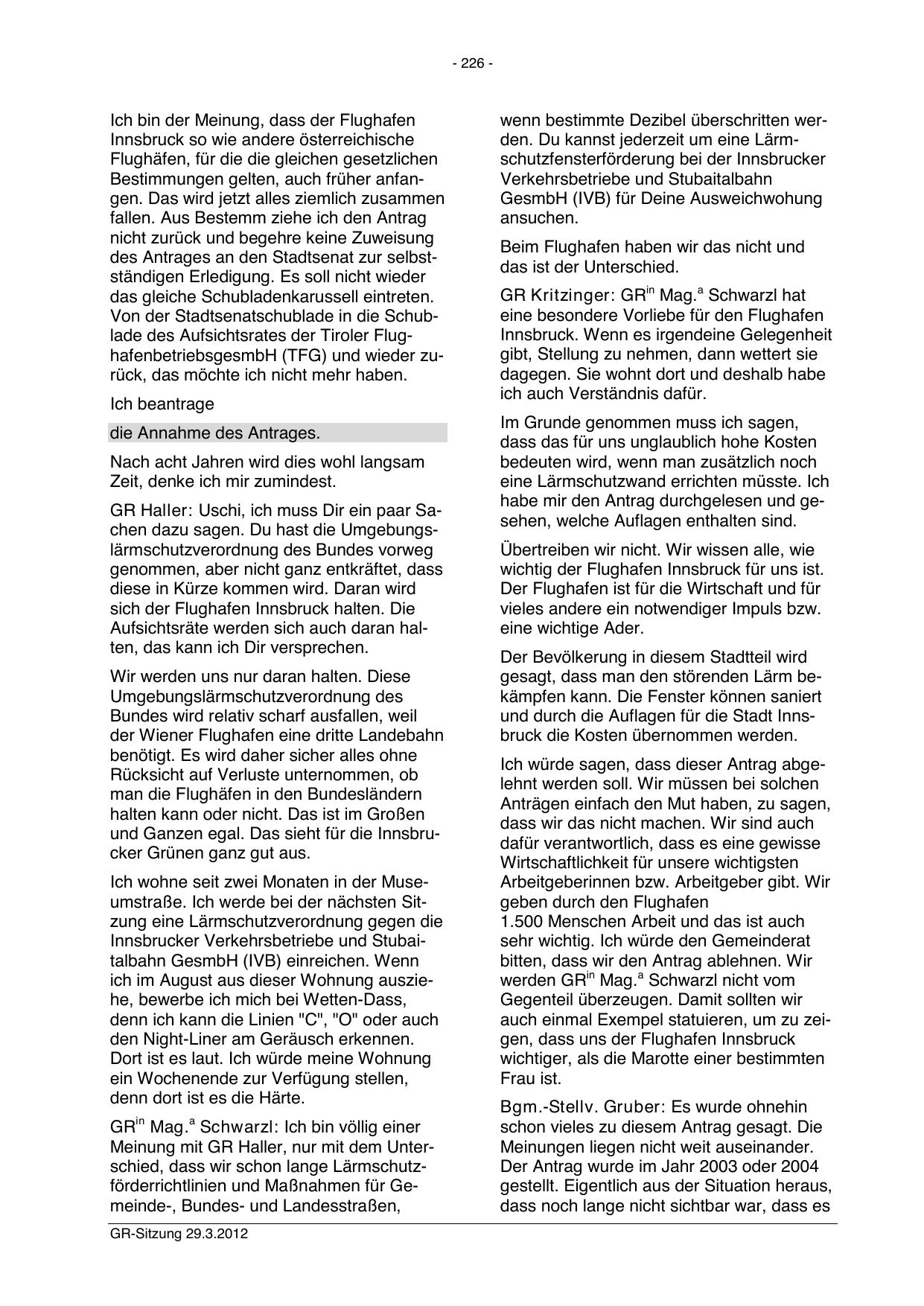 Von der Stadtsenatschublade in die Schublade des Aufsichtsrates der Tiroler FlughafenbetriebsgesmbH (TFG) und wieder zurück, das möchte ich nicht mehr haben.
