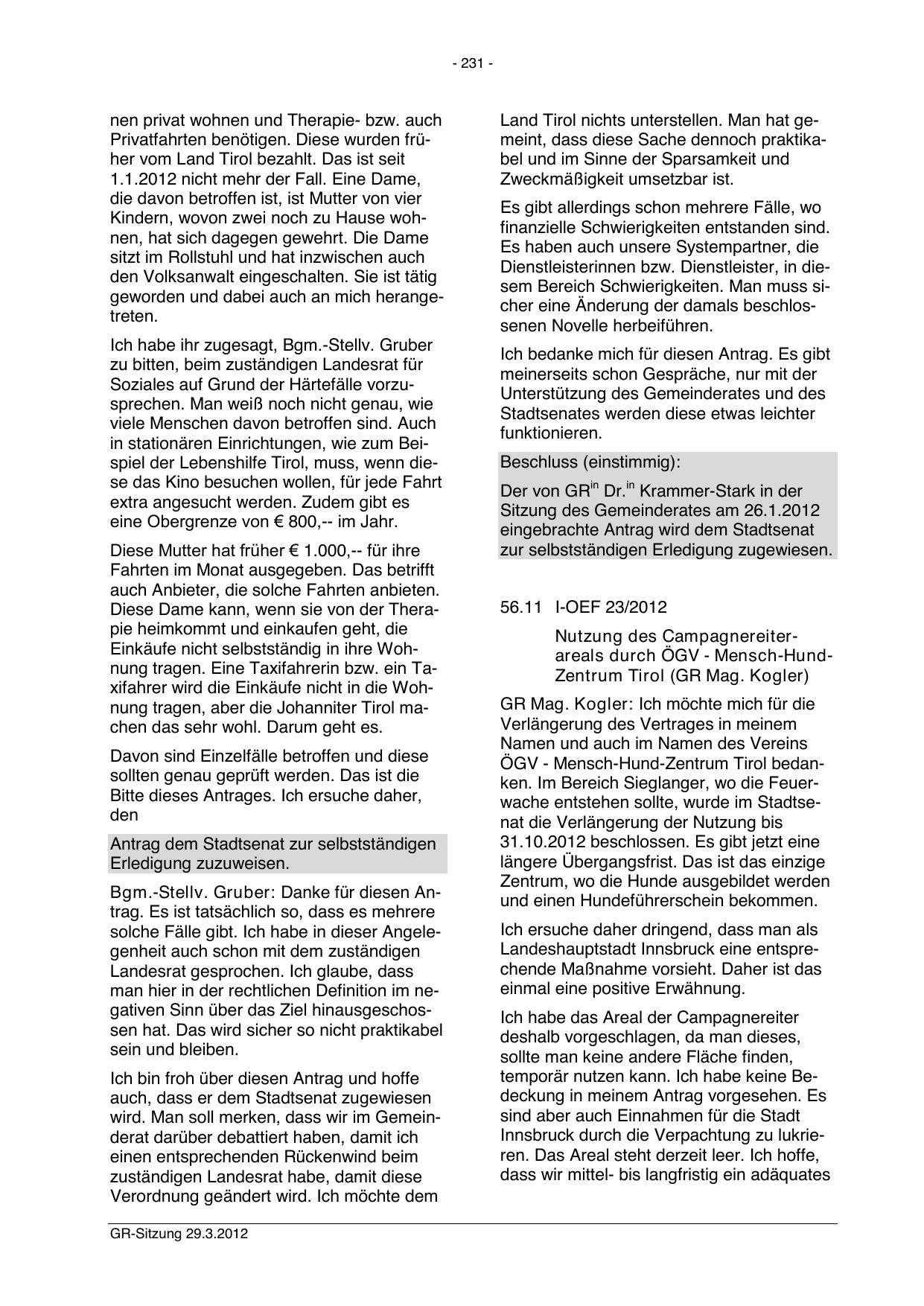 Nutzung des Campagnereiterareals durch ÖGV - Mensch-HundZentrum Tirol (GR Mag. Kogler)