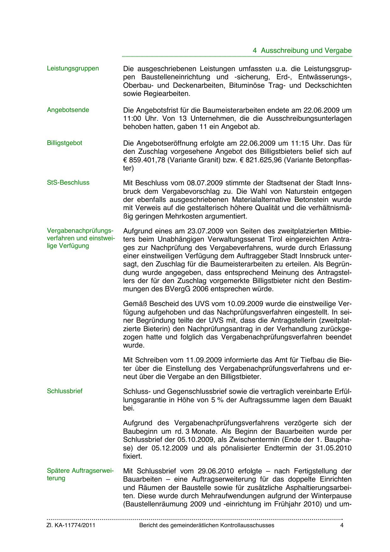 Aufgrund eines am 23.07.2009 von Seiten des zweitplatzierten Mitbieters beim Unabhängigen Verwaltungssenat Tirol eingereichten Antrages zur Nachprüfung des Vergabeverfahrens, wurde durch Erlassung
