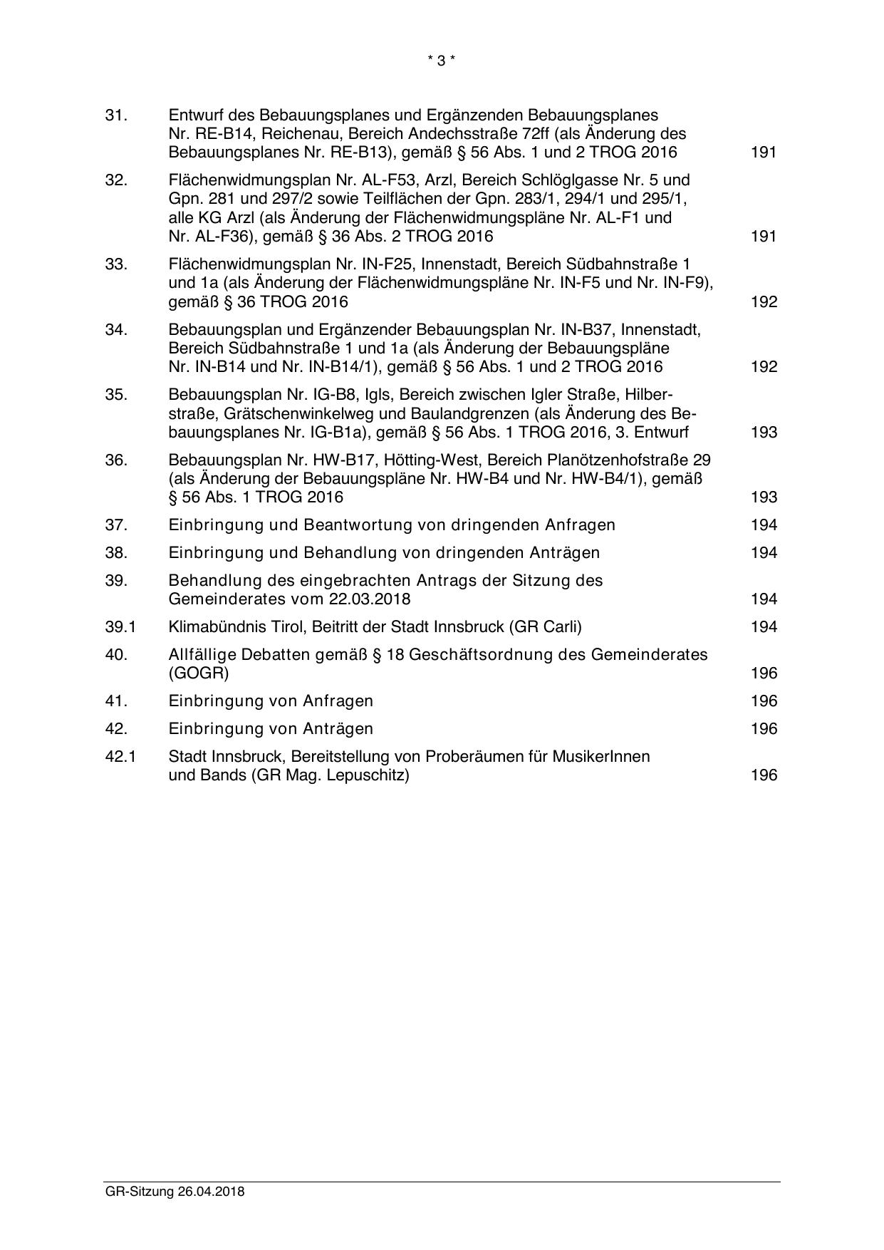 Bebauungsplan Nr. IG-B8, Igls, Bereich zwischen Igler Straße, Hilberstraße, Grätschenwinkelweg und Baulandgrenzen (als Änderung des Bebauungsplanes Nr. IG-B1a), gemäß § 56 Abs. 1 TROG 2016, 3. Entwurf