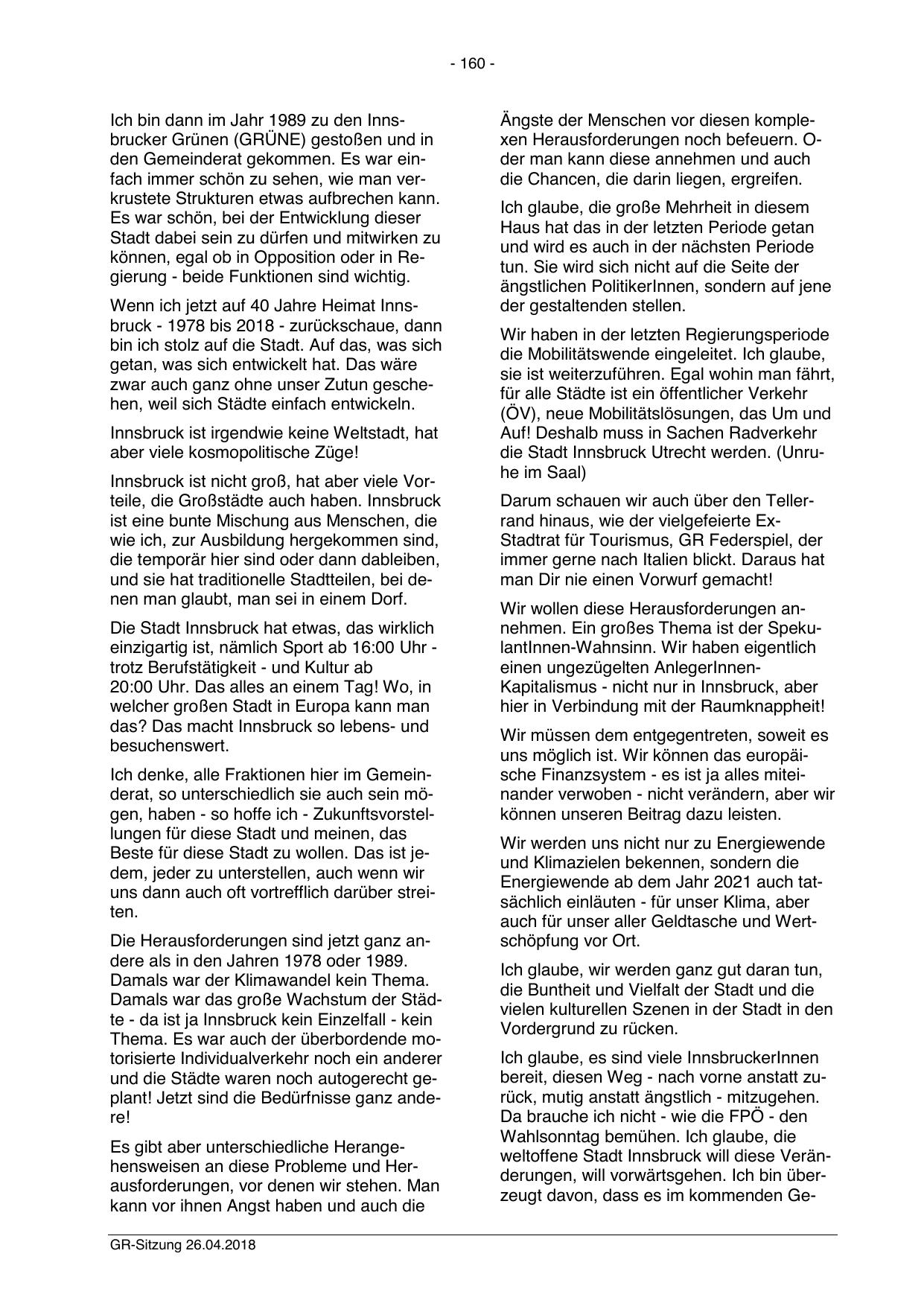 weltoffene Stadt Innsbruck will diese Veränderungen, will vorwärtsgehen. Ich bin überzeugt davon, dass es im kommenden Ge-