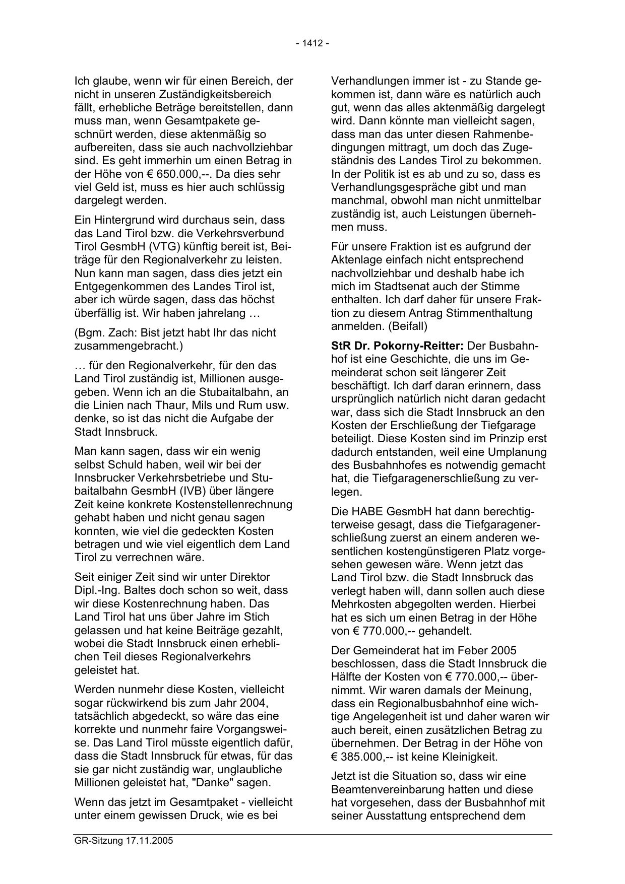 (Bgm. Zach: Bist jetzt habt Ihr das nicht