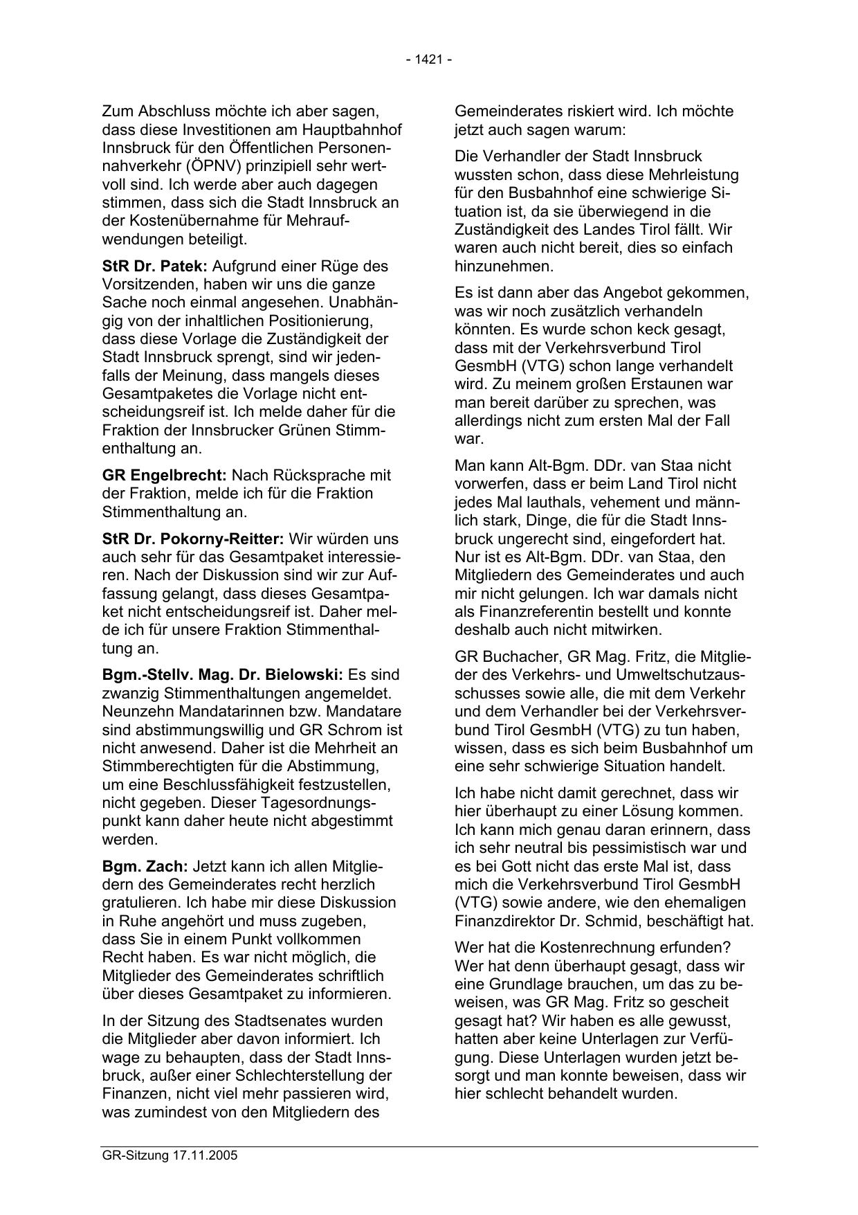 Fraktion der Innsbrucker Grünen Stimmenthaltung an.