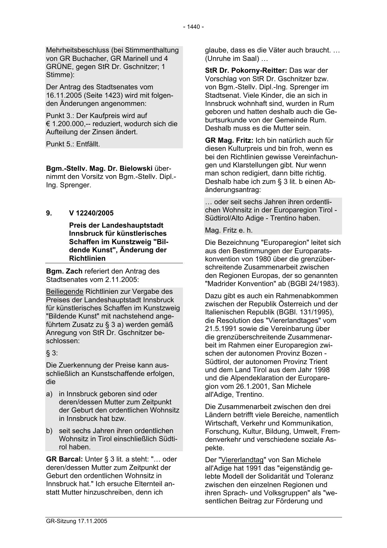 Vorschlag von StR Dr. Gschnitzer bzw.