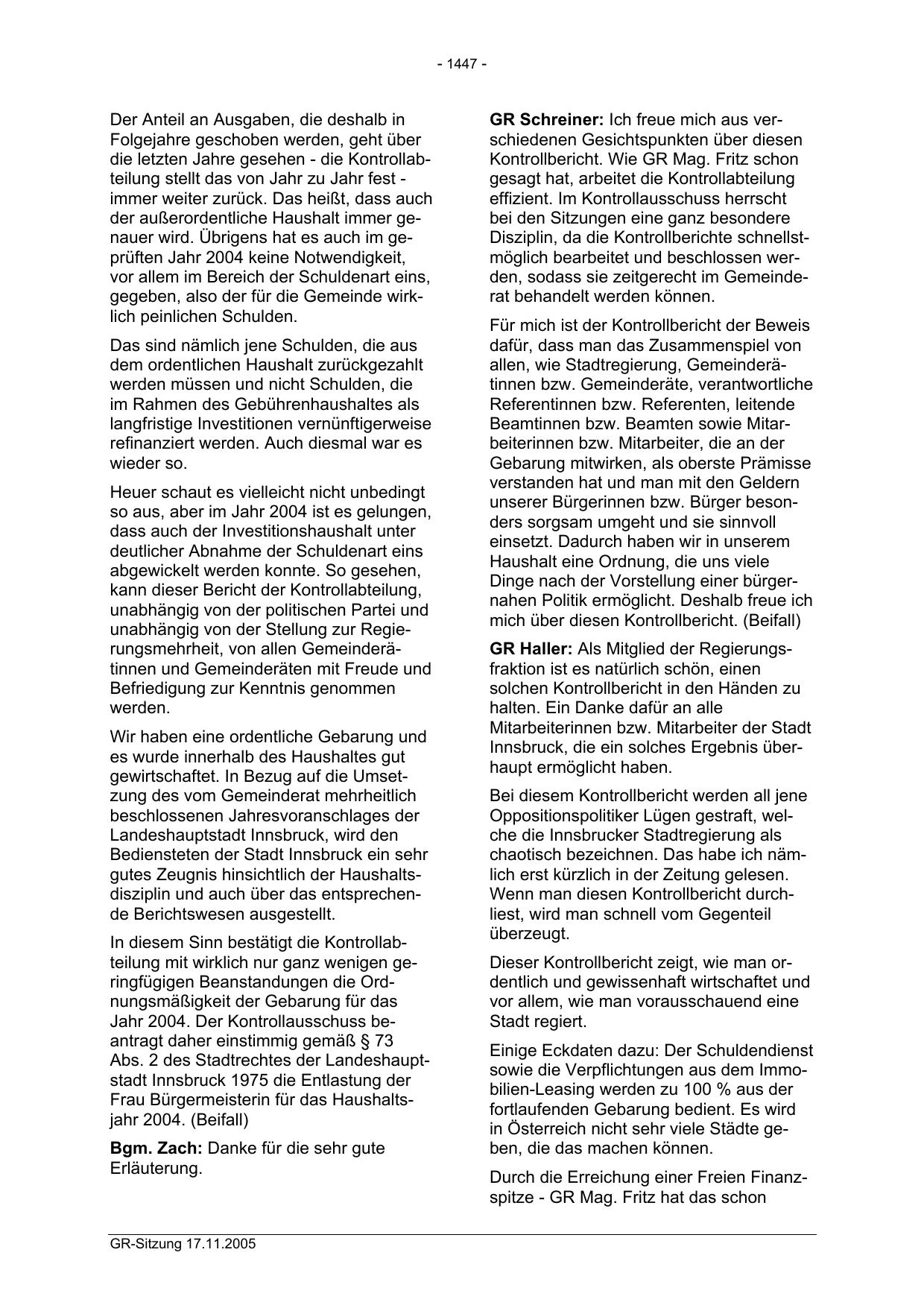 GR-Sitzung 17.11.2005