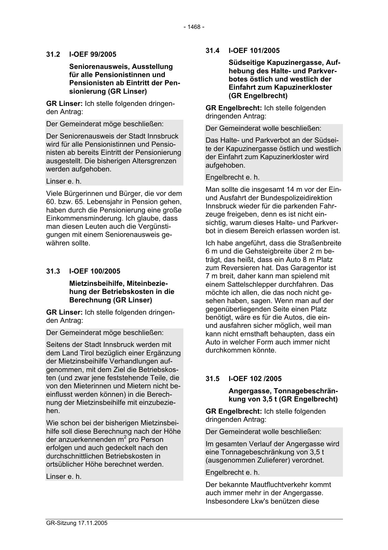 Innsbruck wieder für die parkenden Fahrzeuge freigeben, denn es ist nicht einsichtig, warum dieses Halte- und Parkverbot in diesem Bereich erlassen worden ist.