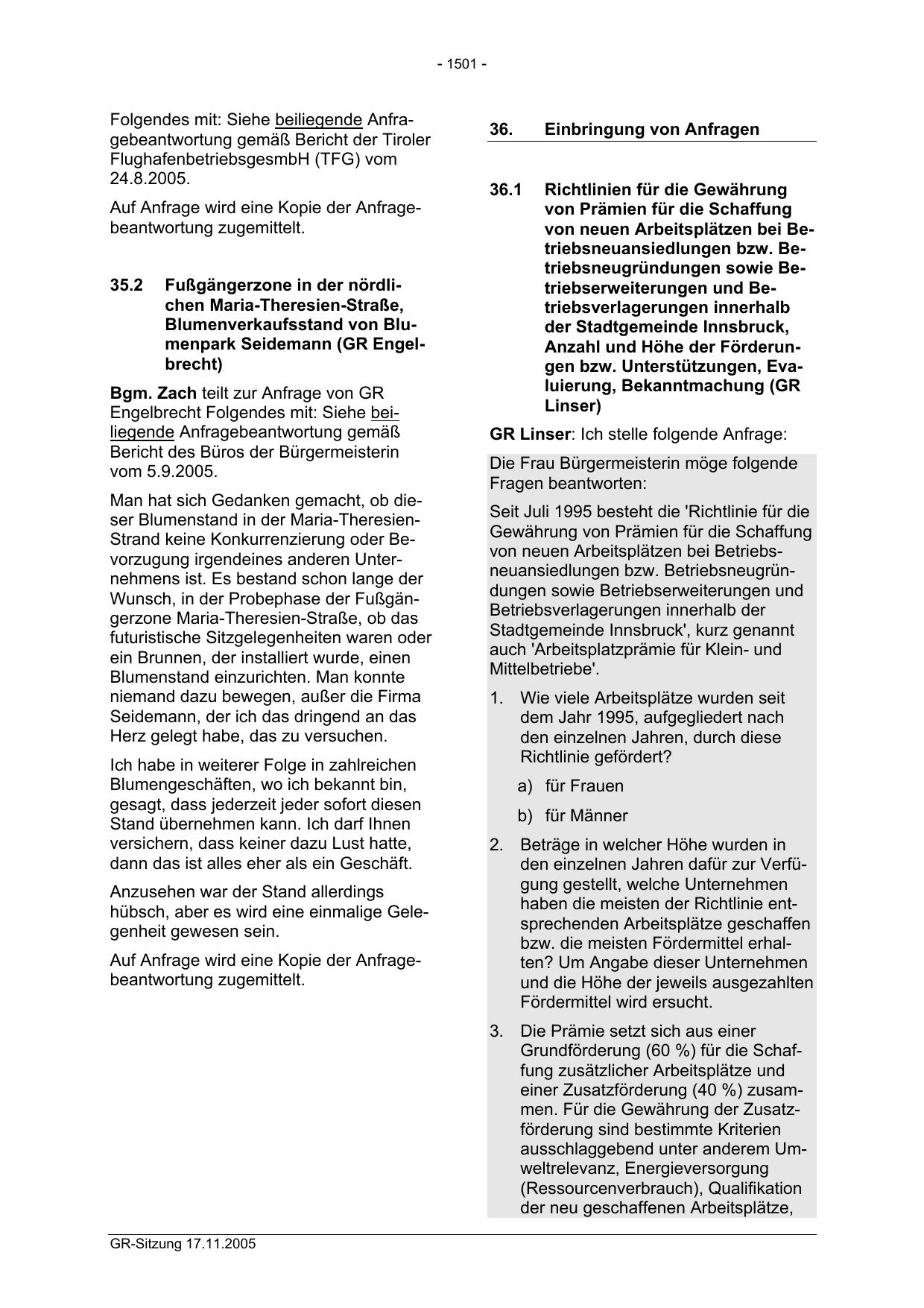 Man hat sich Gedanken gemacht, ob dieser Blumenstand in der Maria-TheresienStrand keine Konkurrenzierung oder Bevorzugung irgendeines anderen Unternehmens ist. Es bestand schon lange der