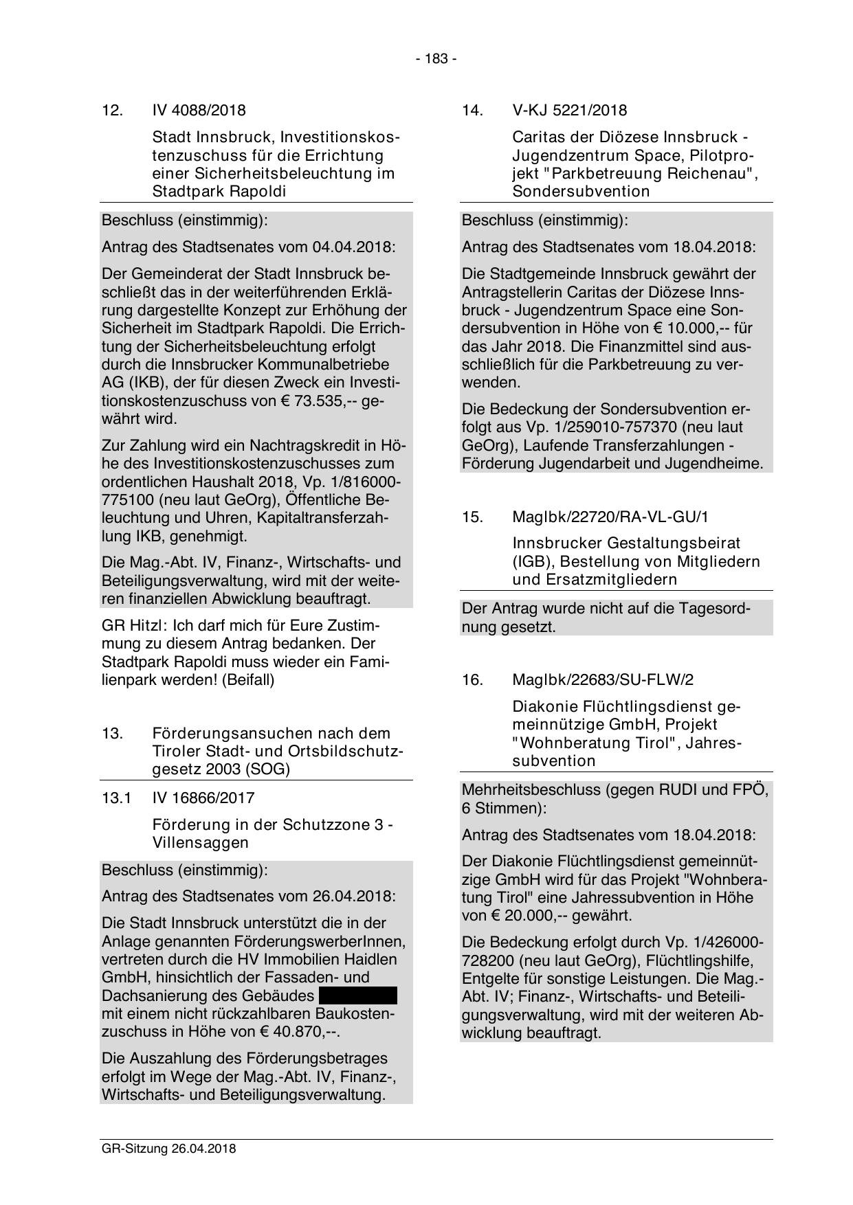 GR Hitzl: Ich darf mich für Eure Zustimmung zu diesem Antrag bedanken. Der