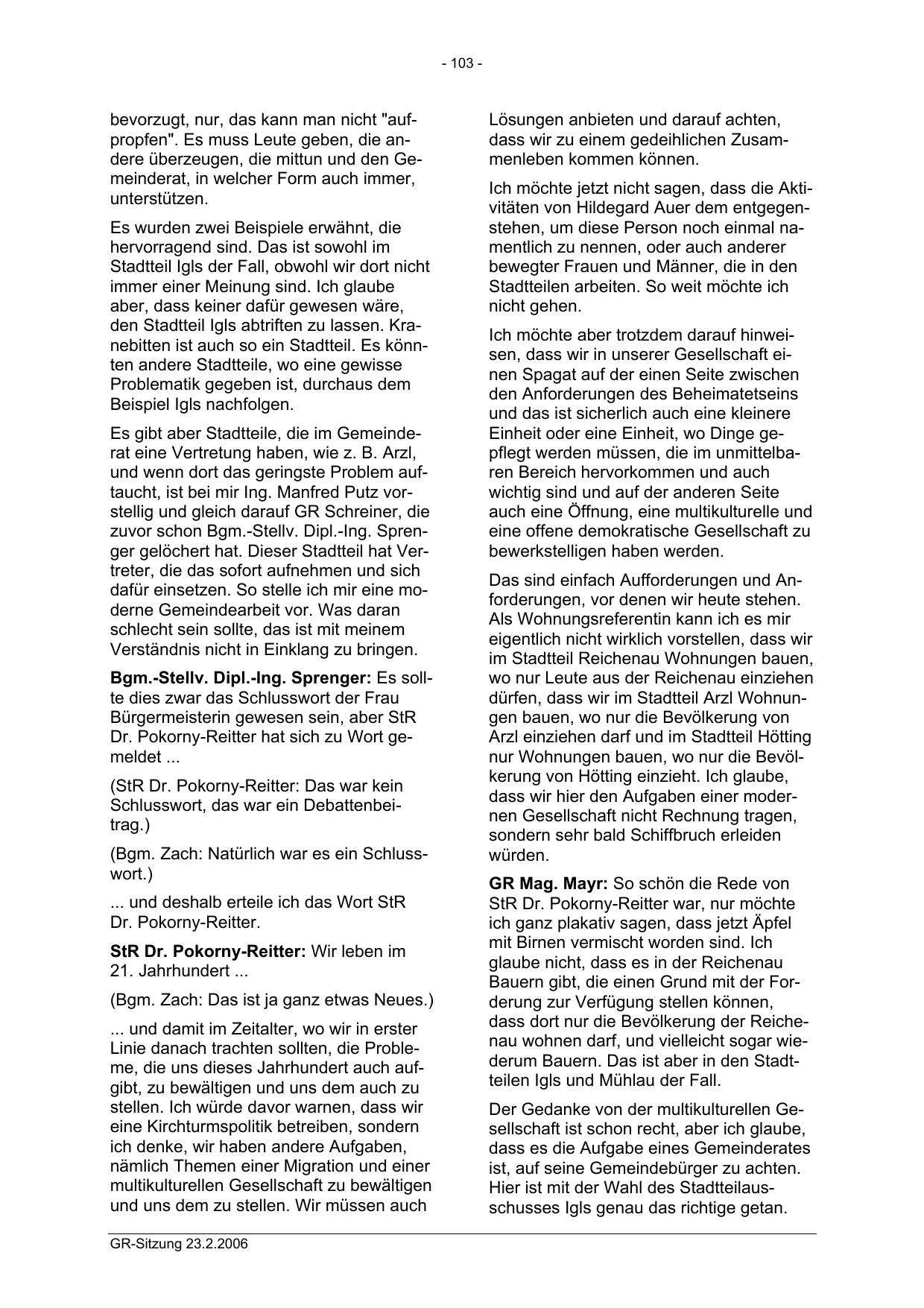 Bgm.-Stellv. Dipl.-Ing. Sprenger: Es sollte dies zwar das Schlusswort der Frau