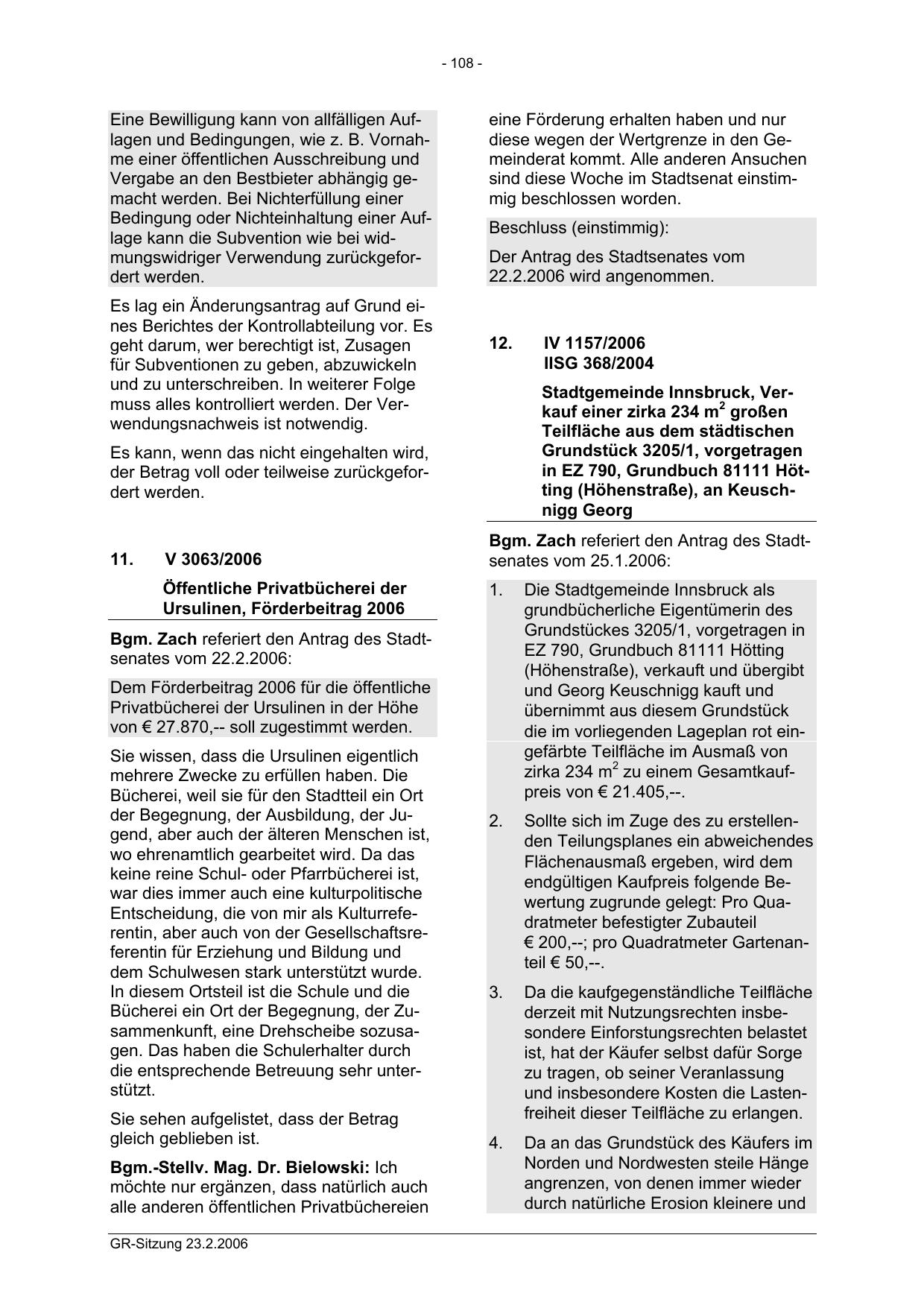 Bgm. Zach referiert den Antrag des Stadtsenates vom 22.2.2006: