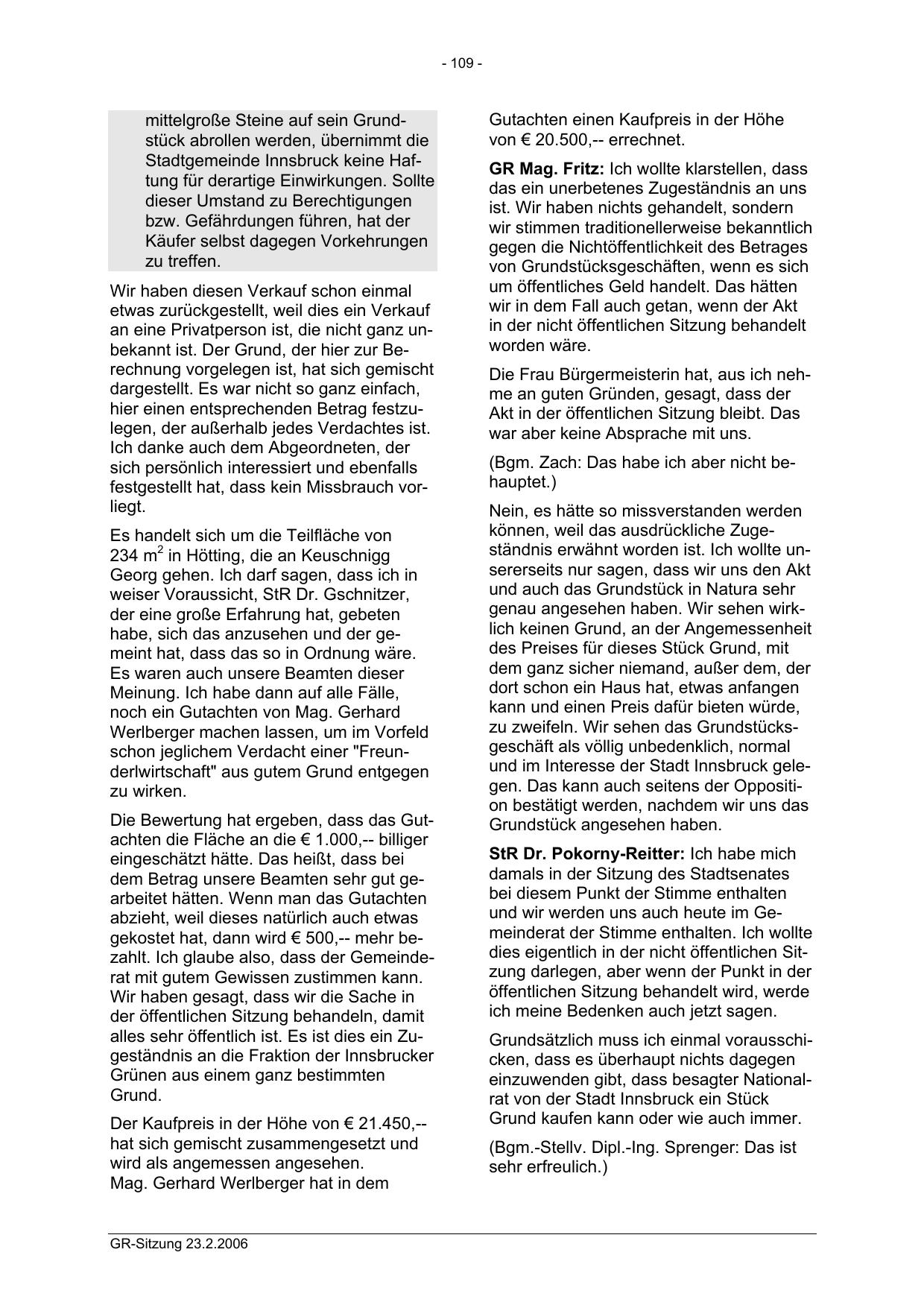 alles sehr öffentlich ist. Es ist dies ein Zugeständnis an die Fraktion der Innsbrucker