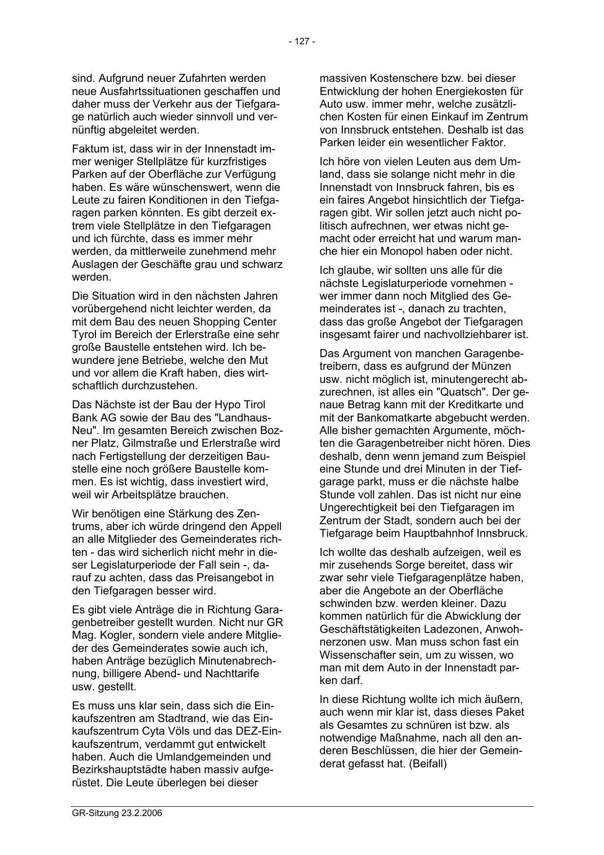 Es muss uns klar sein, dass sich die Einkaufszentren am Stadtrand, wie das Einkaufszentrum Cyta Völs und das DEZ-Einkaufszentrum, verdammt gut entwickelt