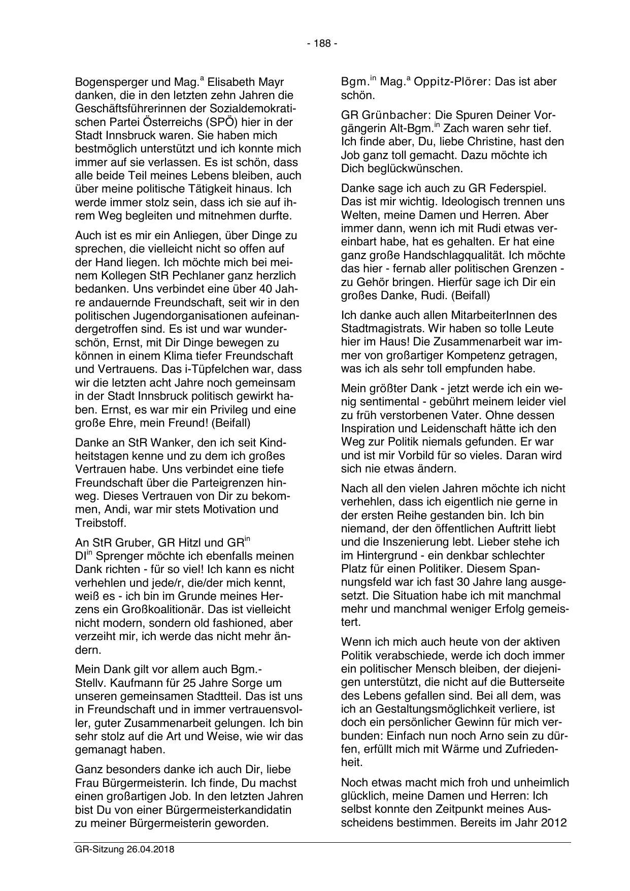 in der Stadt Innsbruck politisch gewirkt haben. Ernst, es war mir ein Privileg und eine