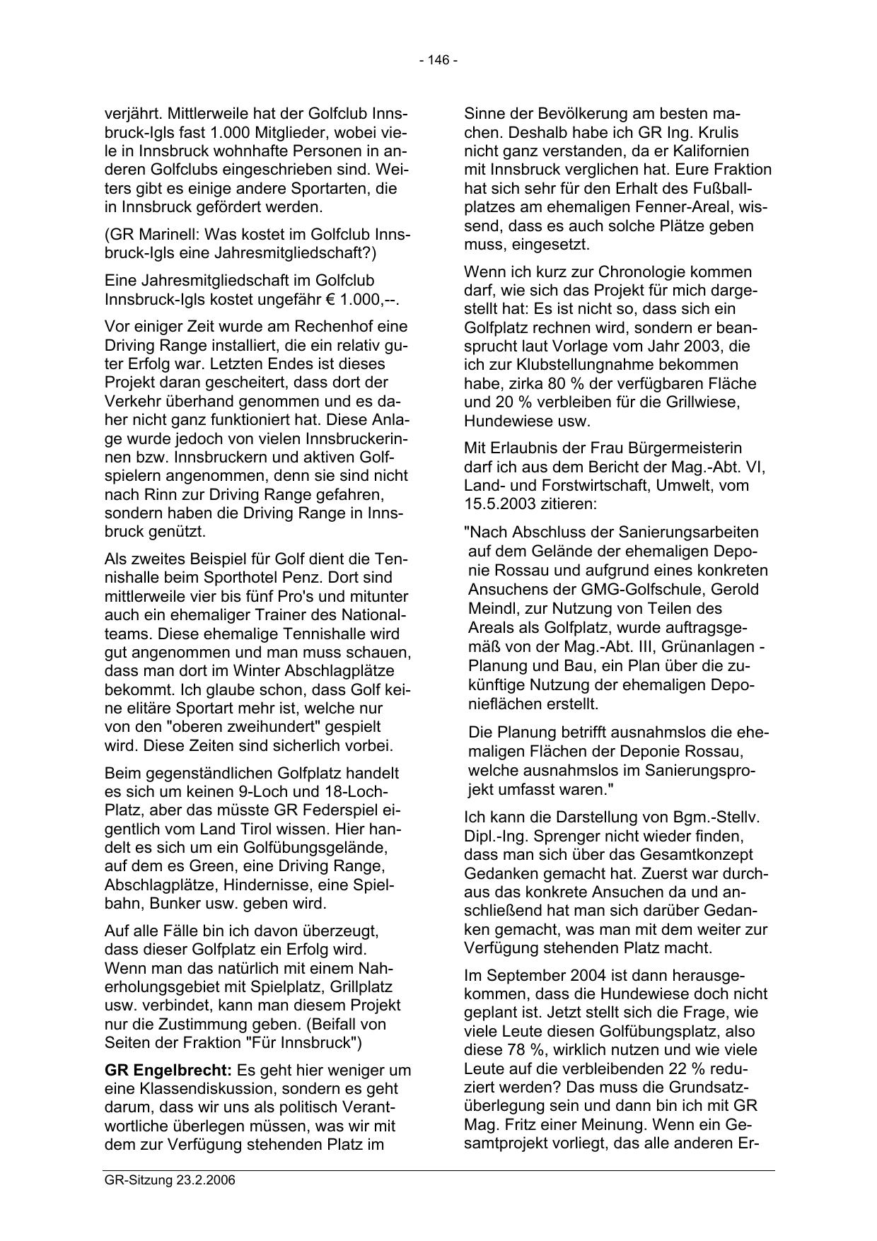 Golfplatz rechnen wird, sondern er beansprucht laut Vorlage vom Jahr 2003, die