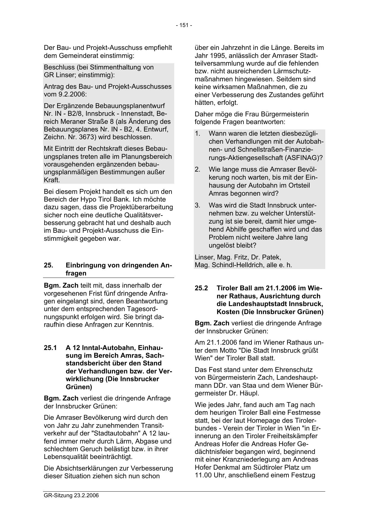 vorgesehenen Frist fünf dringende Anfragen eingelangt sind, deren Beantwortung