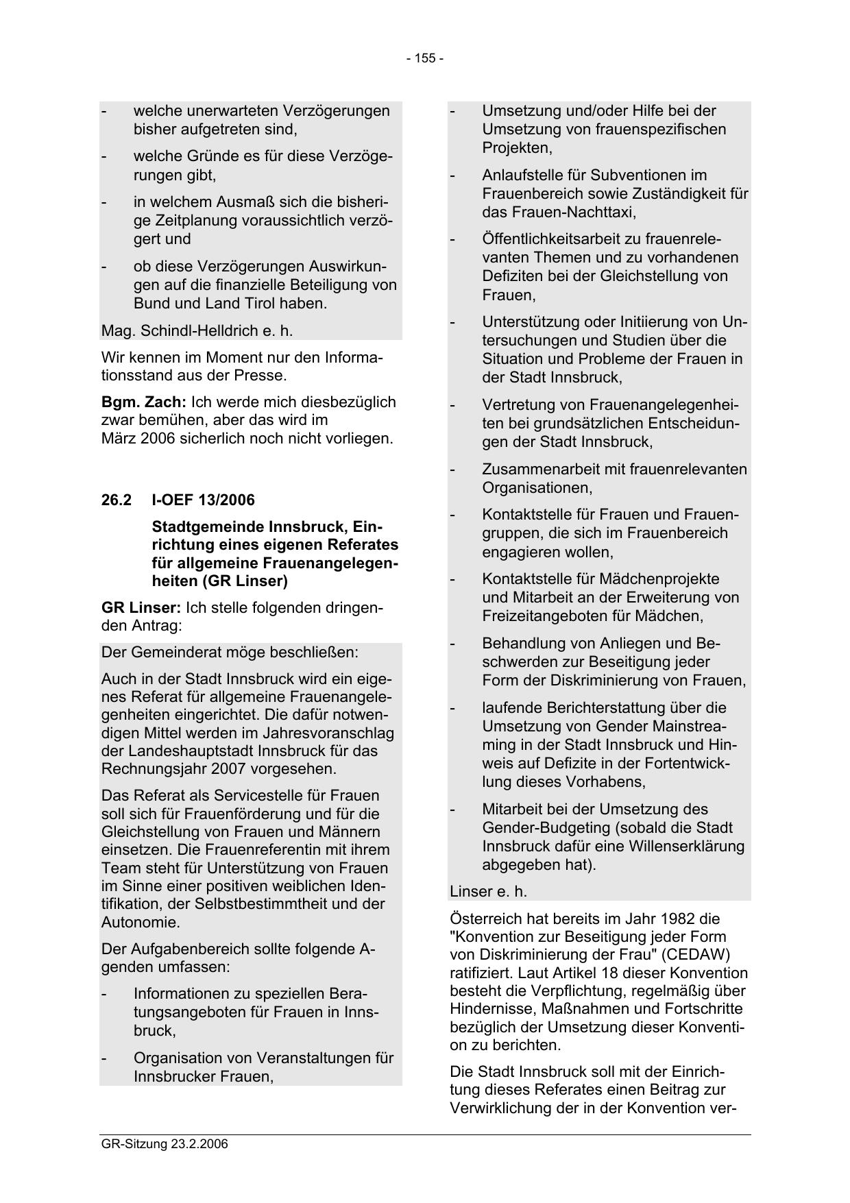 für allgemeine Frauenangelegenheiten (GR Linser)