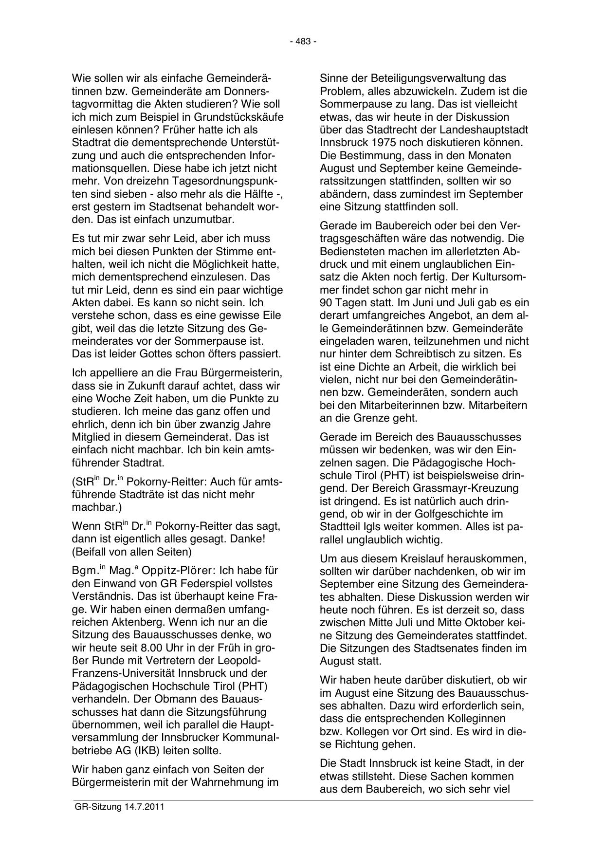 GR-Sitzung 14.7.2011