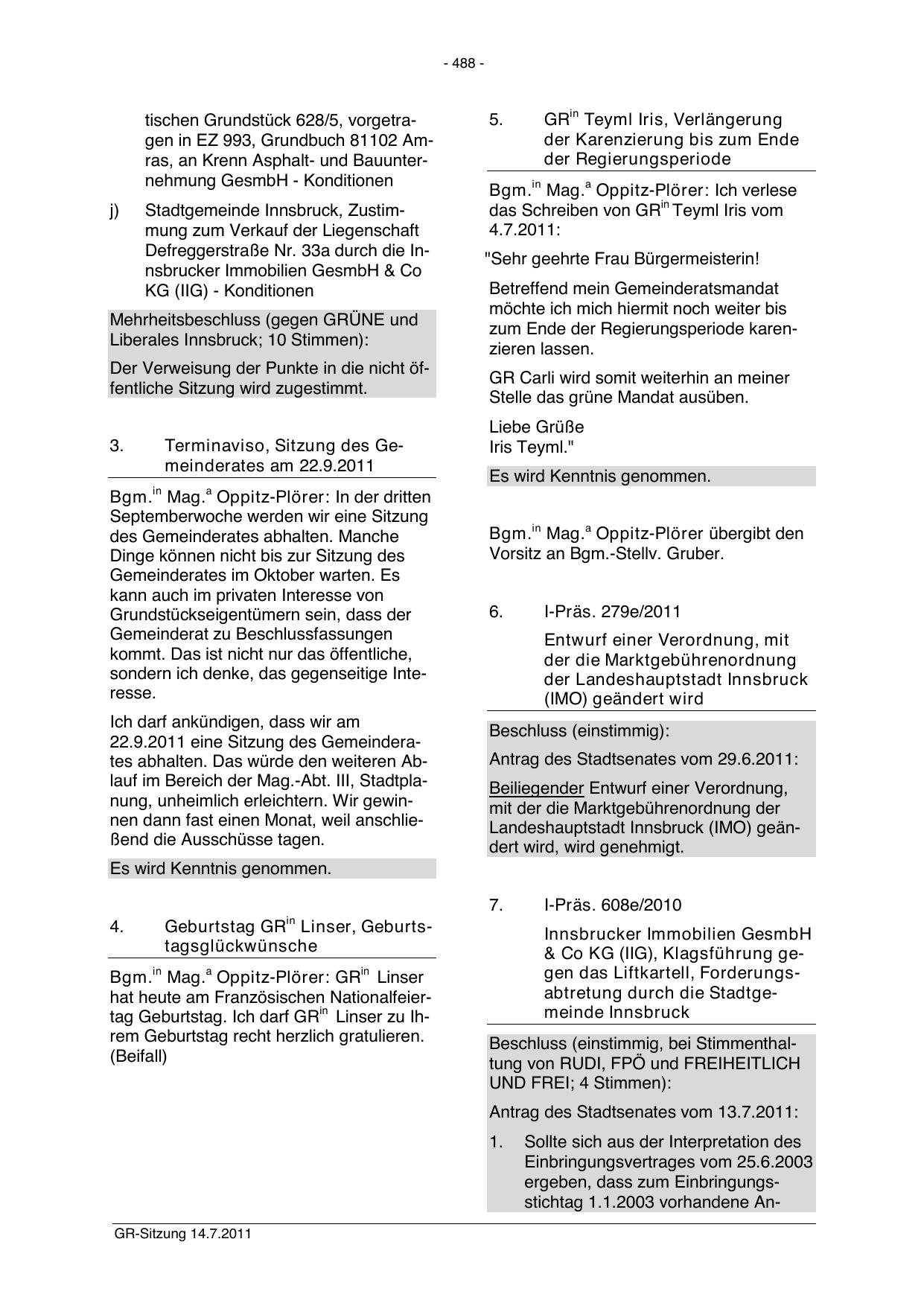 GR-Sitzung 14.7.2011