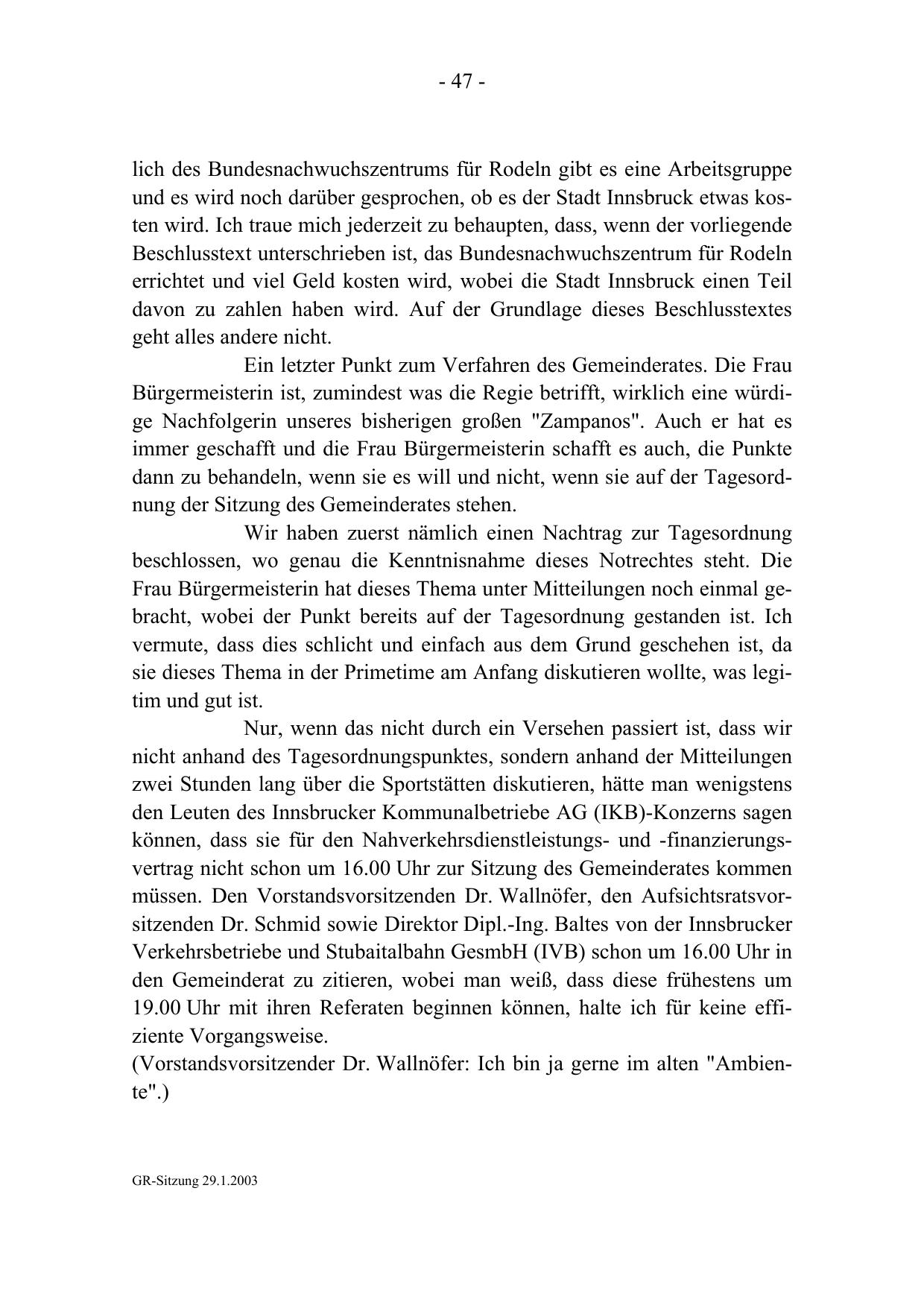 und es wird noch darüber gesprochen, ob es der Stadt Innsbruck etwas kosten wird. Ich traue mich jederzeit zu behaupten, dass, wenn der vorliegende