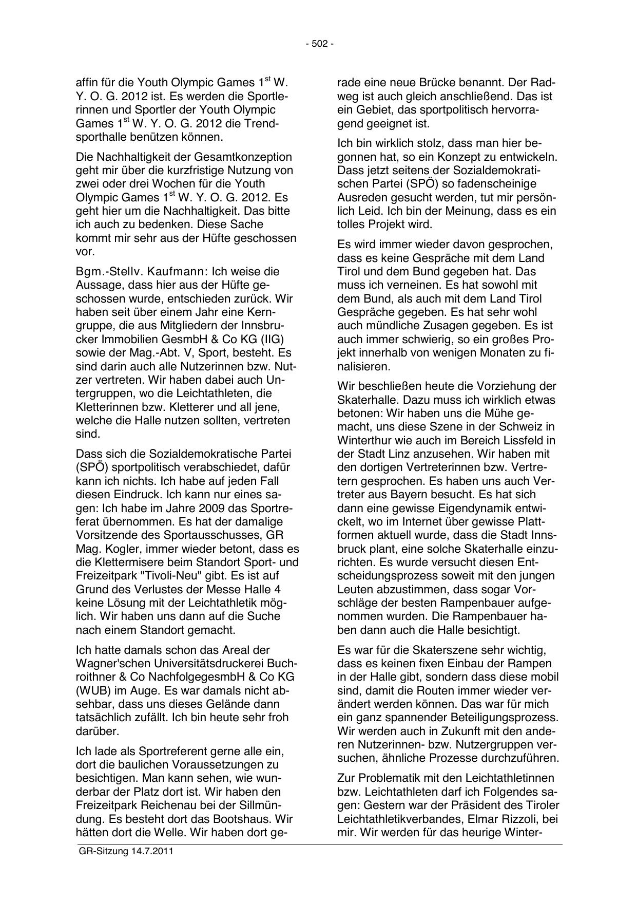 hätten dort die Welle. Wir haben dort geGR-Sitzung 14.7.2011