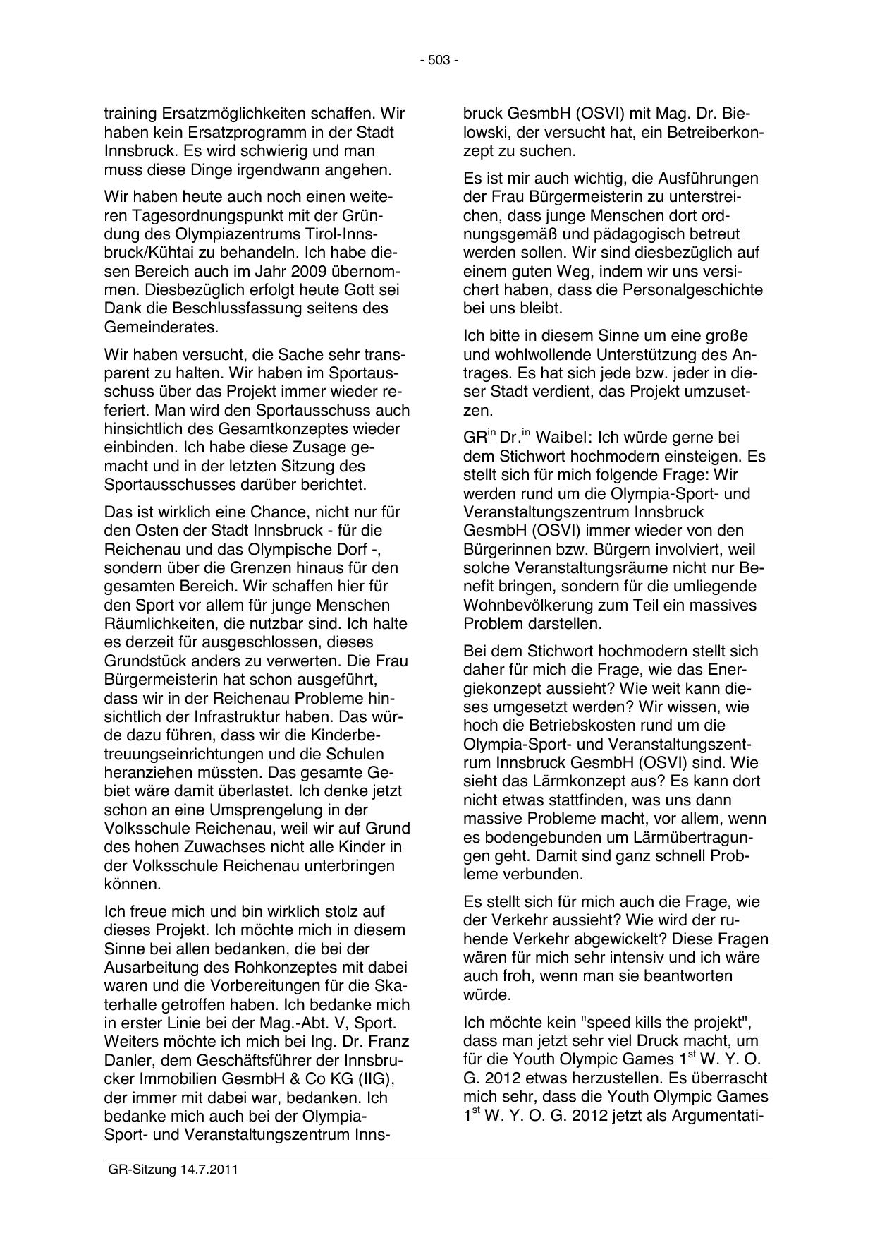 bedanke mich auch bei der OlympiaSport- und Veranstaltungszentrum InnsGR-Sitzung 14.7.2011