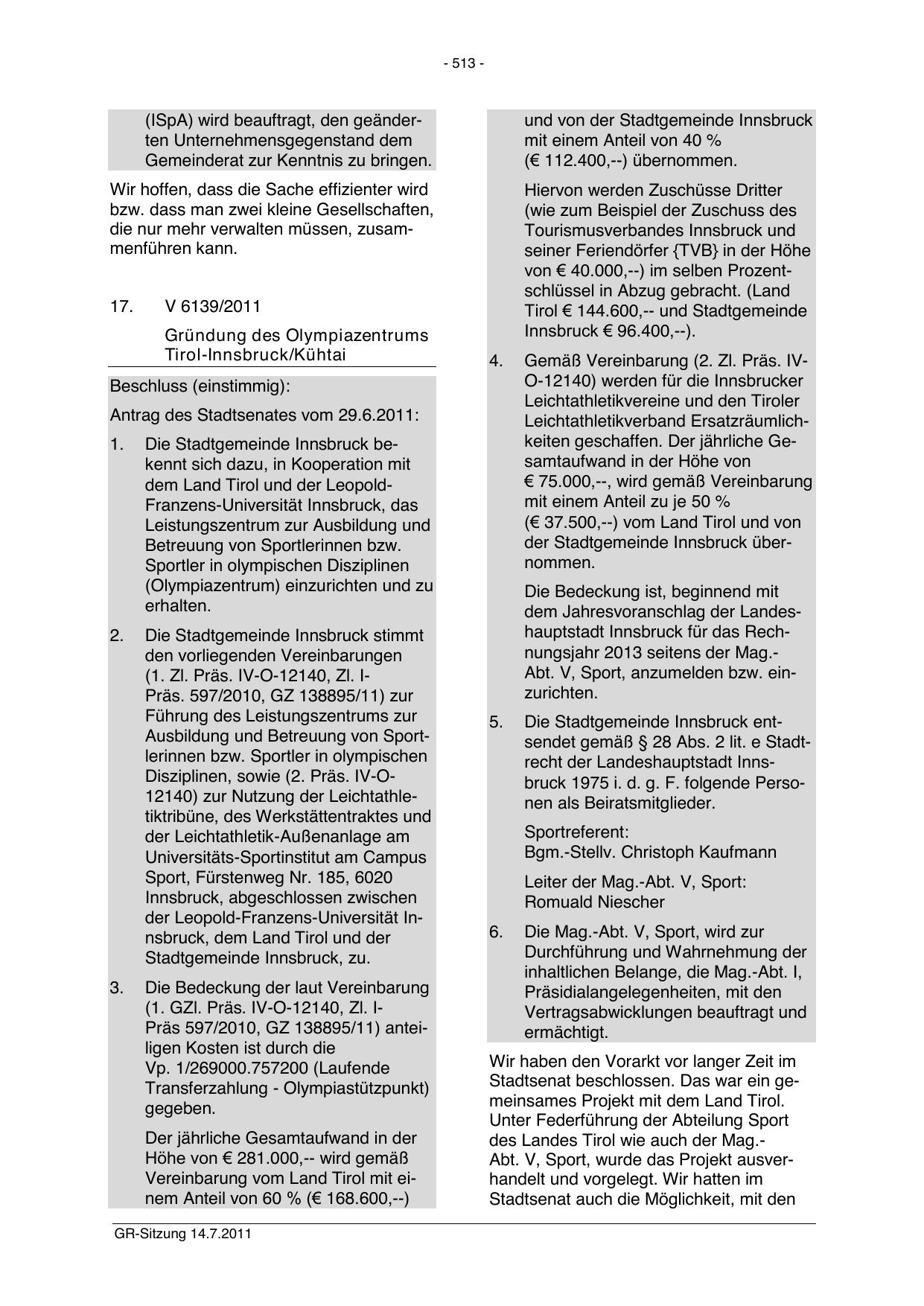Stadtsenat beschlossen. Das war ein gemeinsames Projekt mit dem Land Tirol.