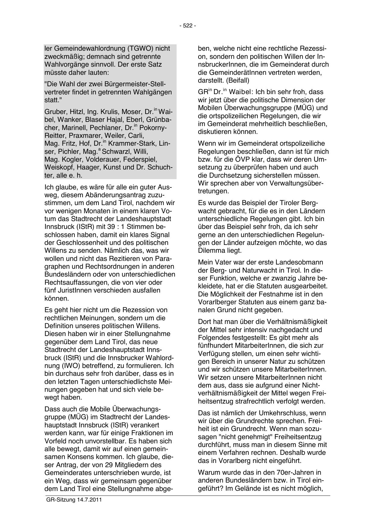dem Land Tirol eine Stellungnahme abgeGR-Sitzung 14.7.2011