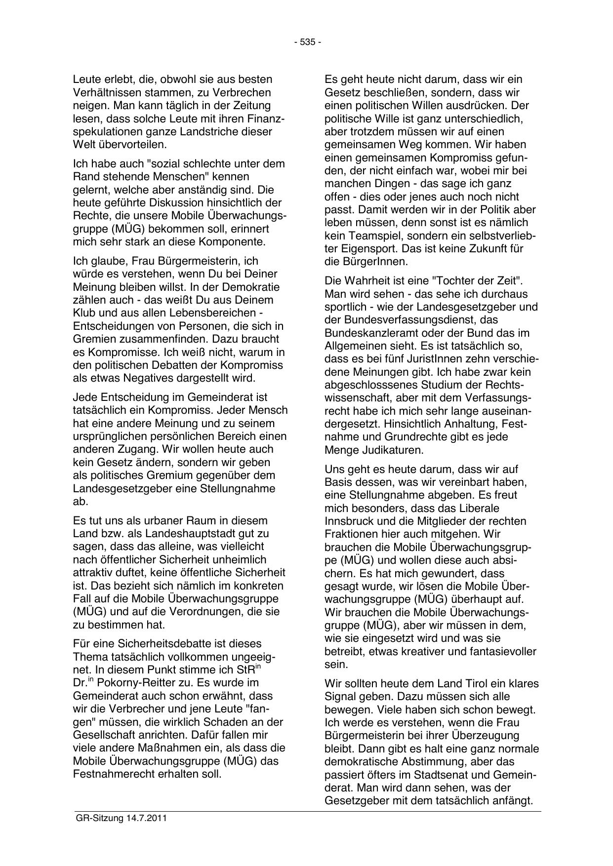 brauchen die Mobile Überwachungsgruppe (MÜG) und wollen diese auch absichern. Es hat mich gewundert, dass