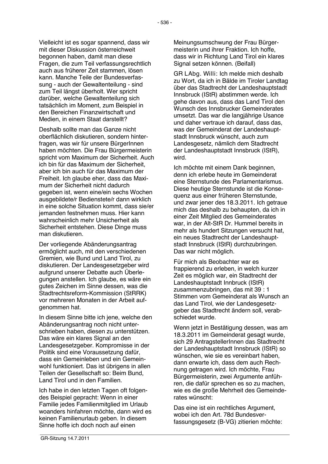 was der Gemeinderat der Landeshauptstadt Innsbruck wünscht, auch zum