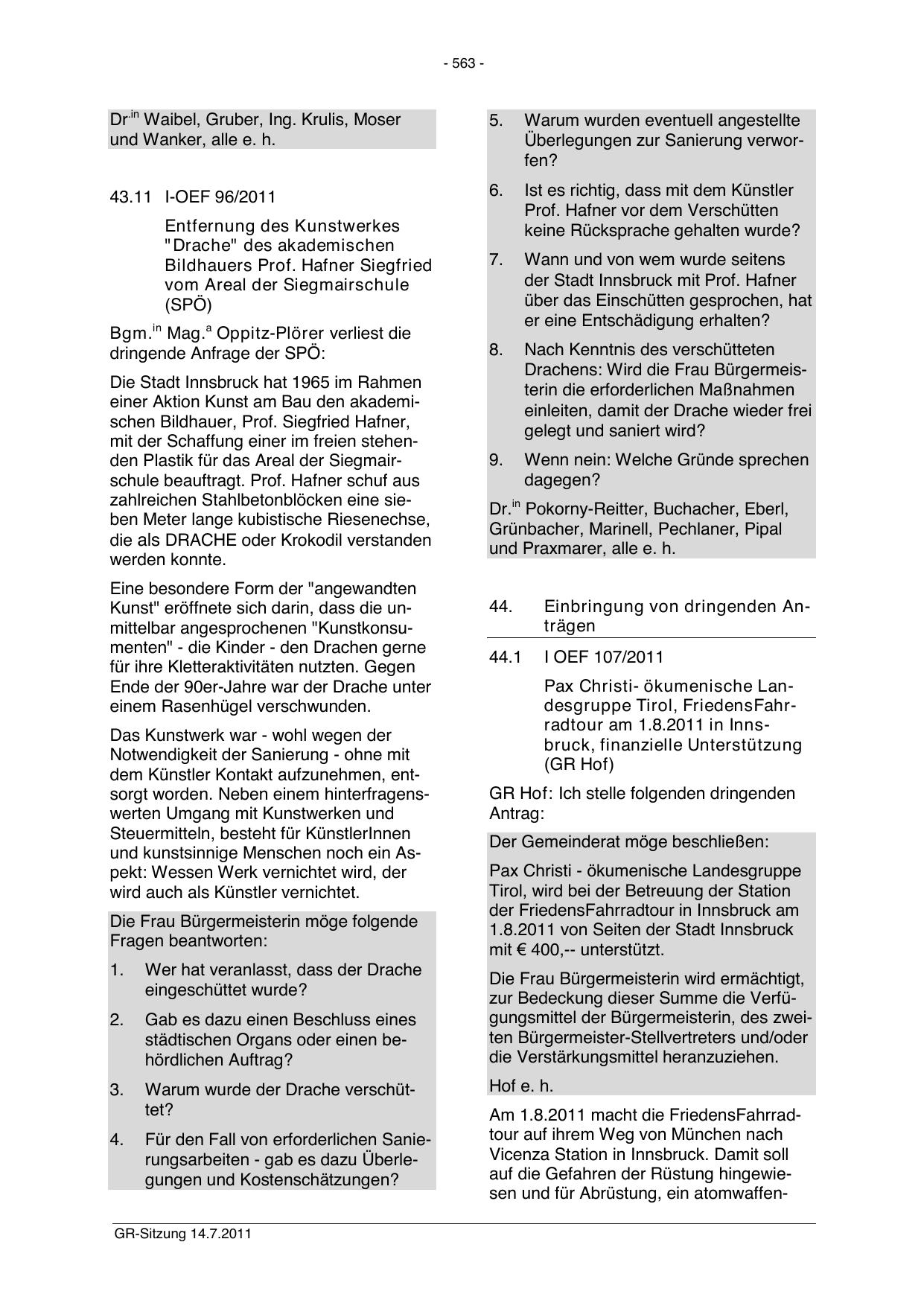 Pax Christi- ökumenische Landesgruppe Tirol, FriedensFahrradtour am 1.8.2011 in Innsbruck, finanzielle Unterstützung