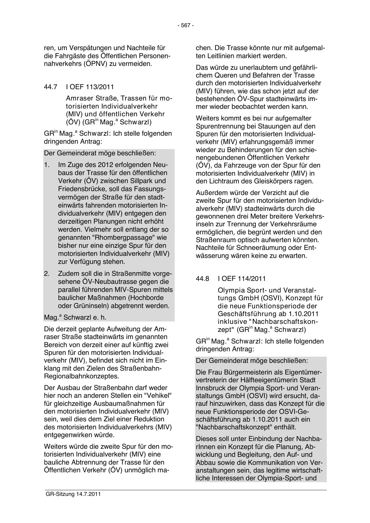 Innsbruck der Olympia Sport- und Veranstaltungs GmbH (OSVI) wird ersucht, darauf hinzuwirken, dass das Konzept für die