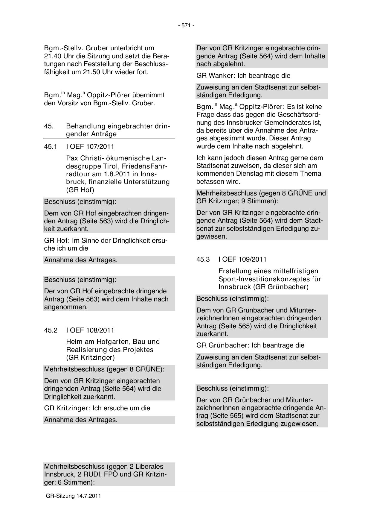 Frage dass das gegen die Geschäftsordnung des Innsbrucker Gemeinderates ist,