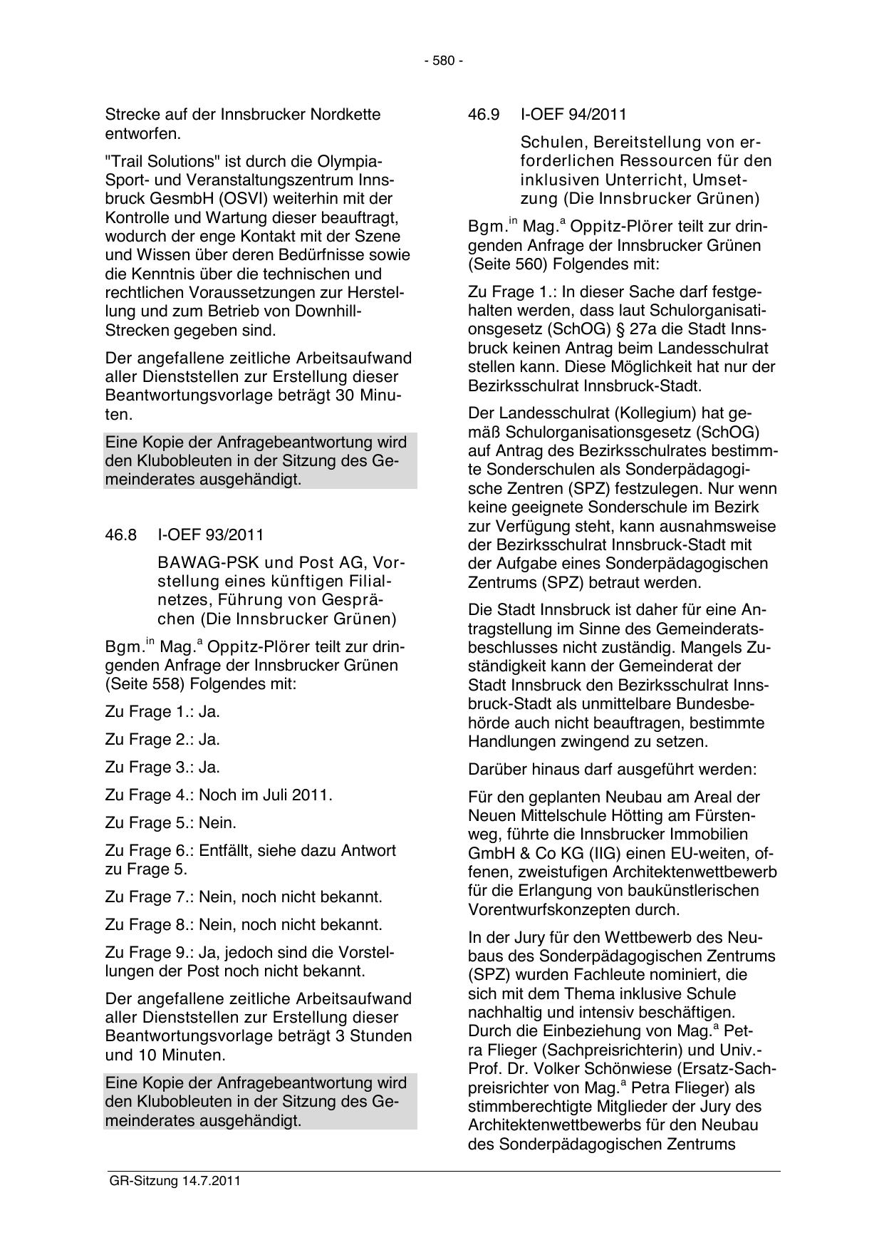 Bgm.in Mag.a Oppitz-Plörer teilt zur dringenden Anfrage der Innsbrucker Grünen