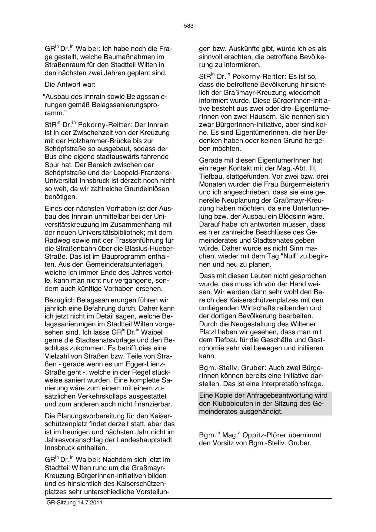 StRin Dr.in Pokorny-Reitter: Der Innrain