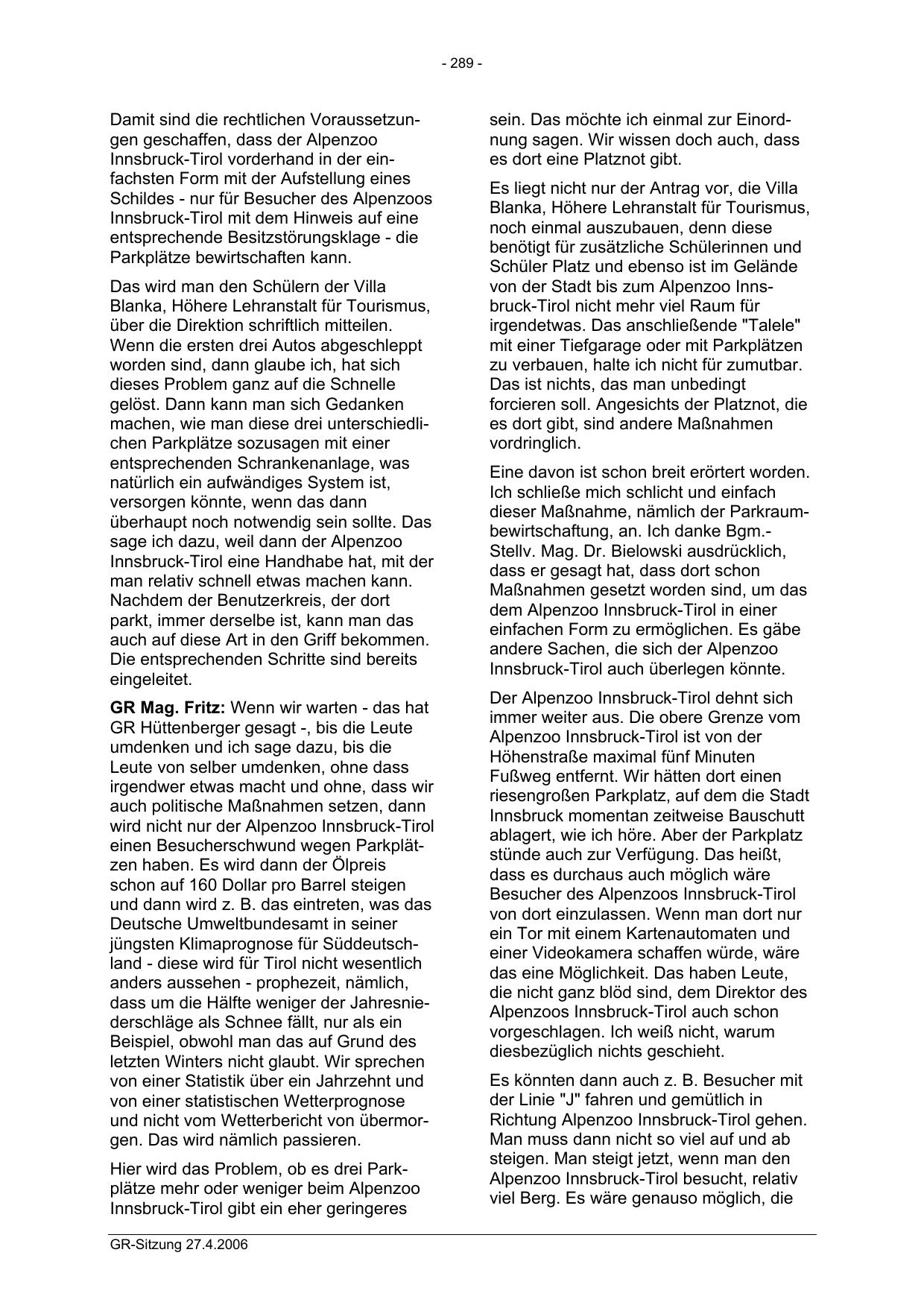 dieser Maßnahme, nämlich der Parkraumbewirtschaftung, an. Ich danke Bgm.Stellv. Mag. Dr. Bielowski ausdrücklich,