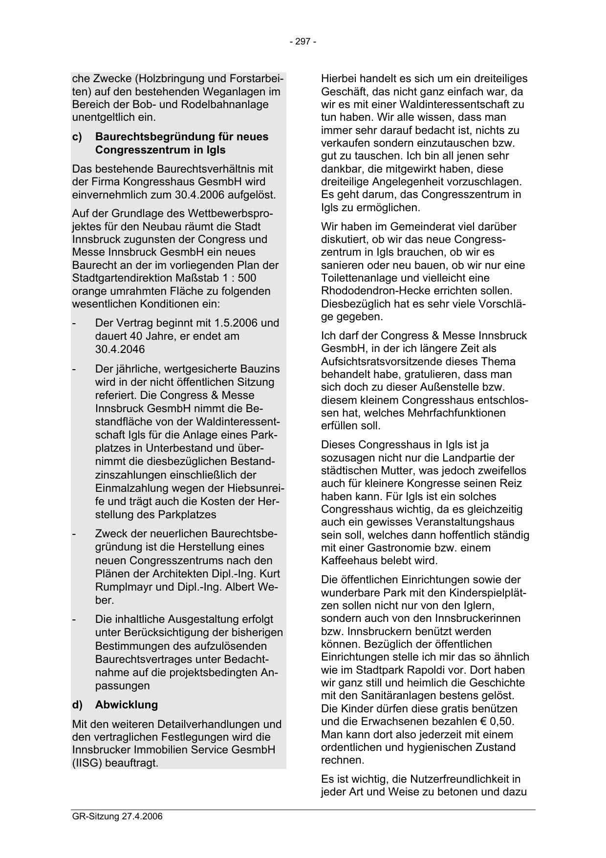diskutiert, ob wir das neue Congresszentrum in Igls brauchen, ob wir es