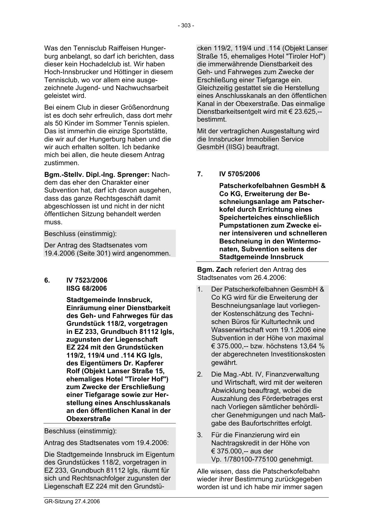 Liegenschaft EZ 224 mit den GrundstüGR-Sitzung 27.4.2006