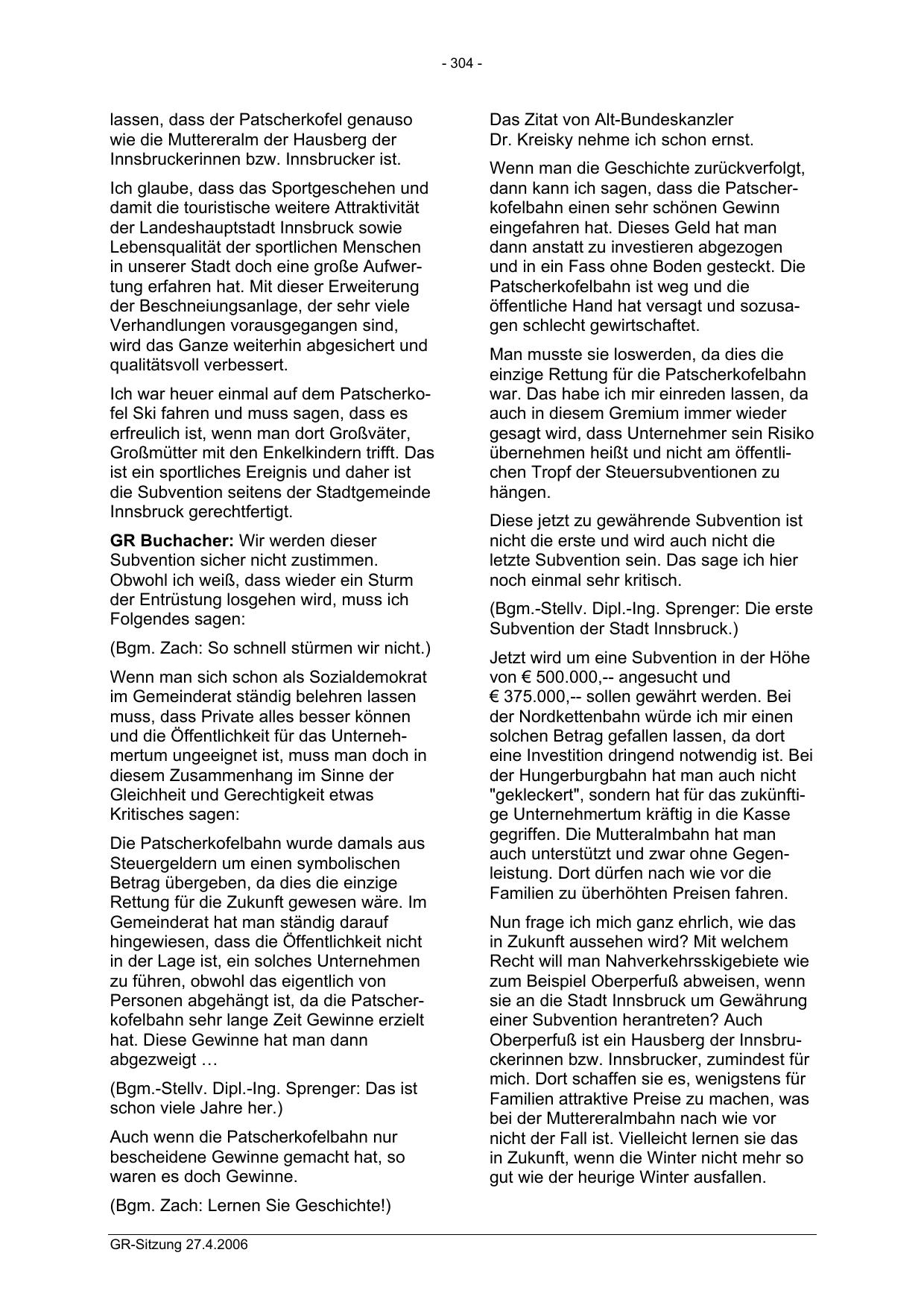 Personen abgehängt ist, da die Patscherkofelbahn sehr lange Zeit Gewinne erzielt