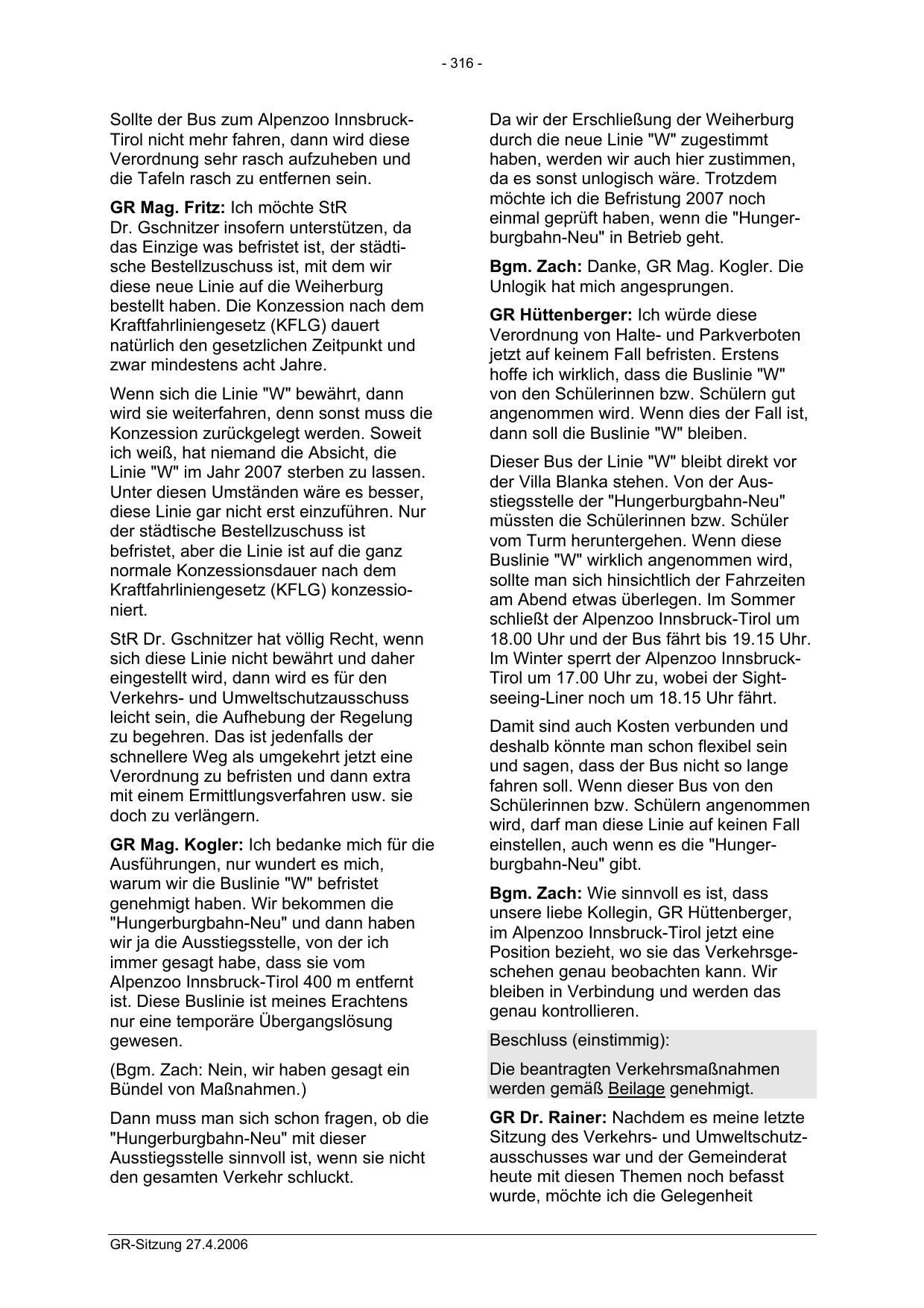 (Bgm. Zach: Nein, wir haben gesagt ein