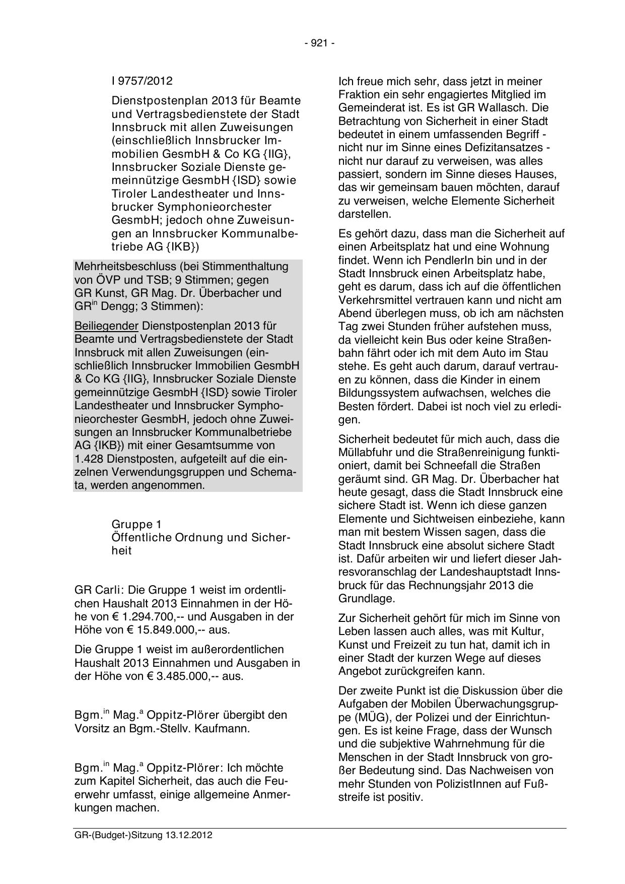 GR-(Budget-)Sitzung 13.12.2012