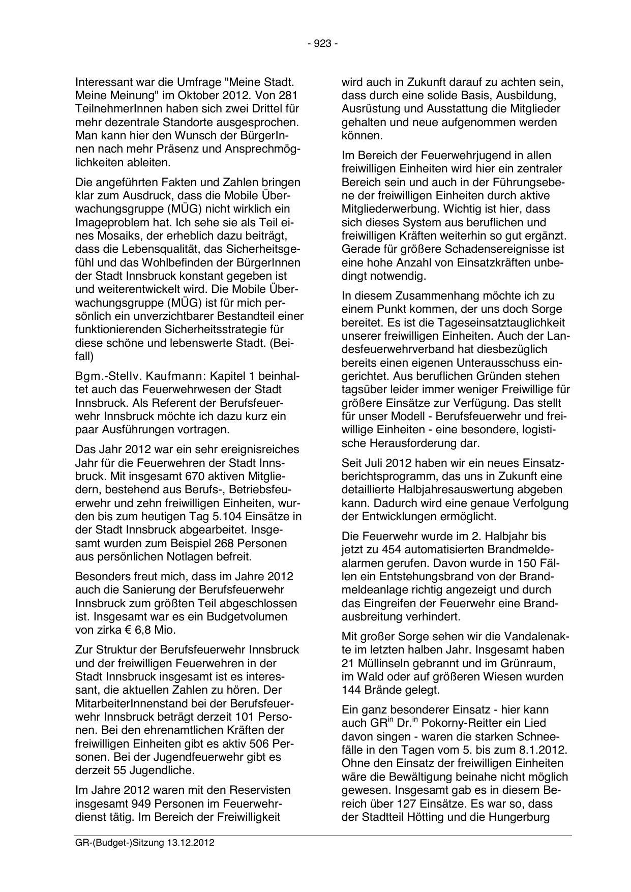 Bgm.-Stellv. Kaufmann: Kapitel 1 beinhaltet auch das Feuerwehrwesen der Stadt