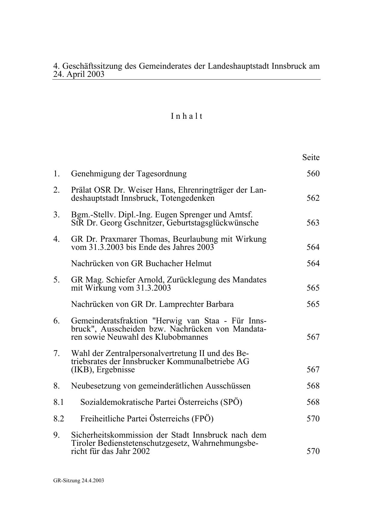 4. Geschäftssitzung des Gemeinderates der Landeshauptstadt Innsbruck am
