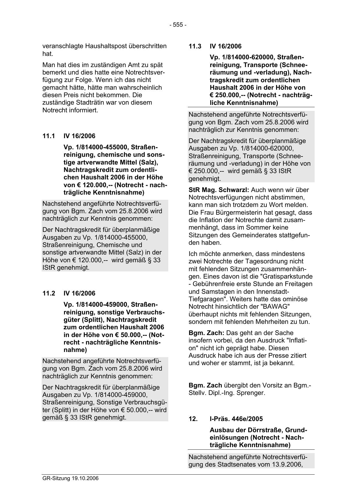 GR-Sitzung 19.10.2006