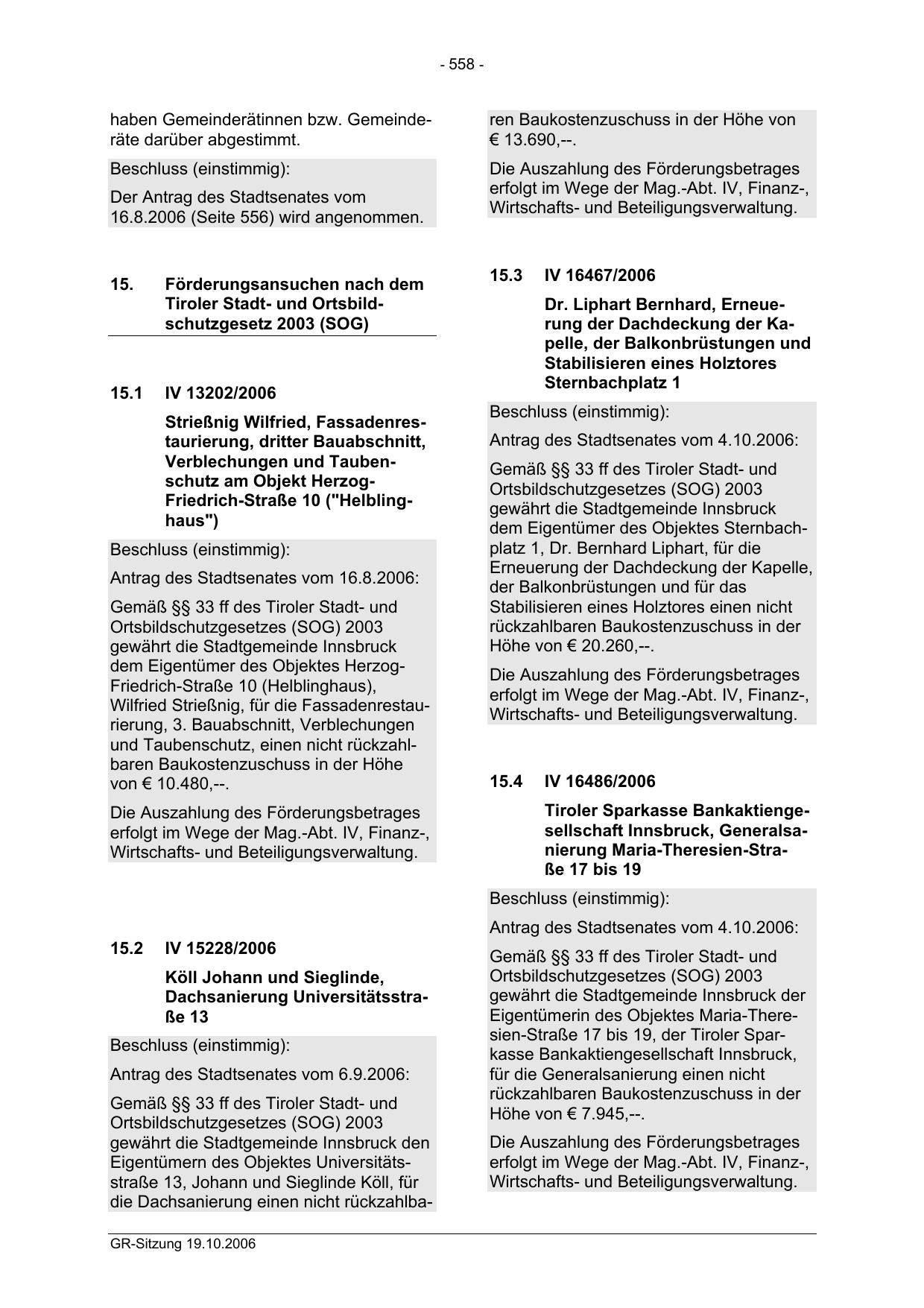 die Dachsanierung einen nicht rückzahlbaGR-Sitzung 19.10.2006