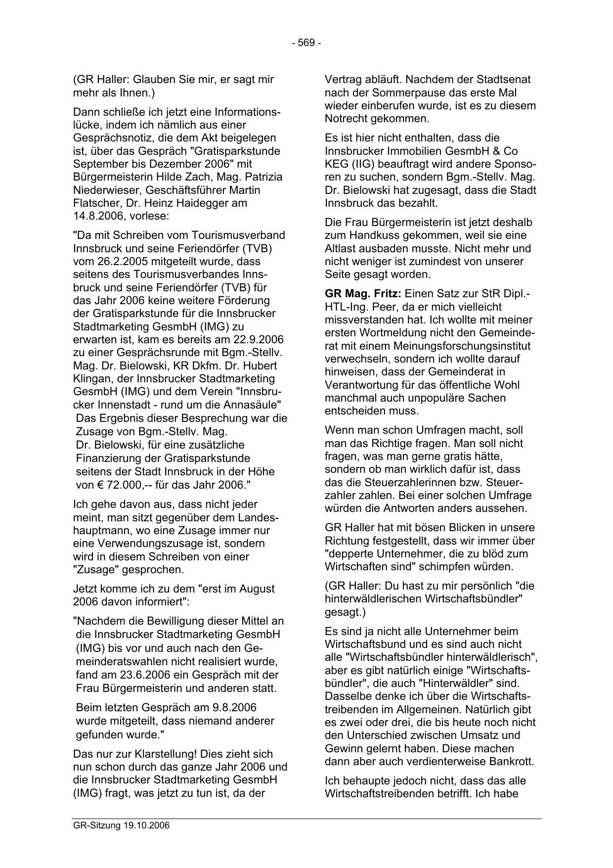 GR Mag. Fritz: Einen Satz zur StR Dipl.HTL-Ing. Peer, da er mich vielleicht