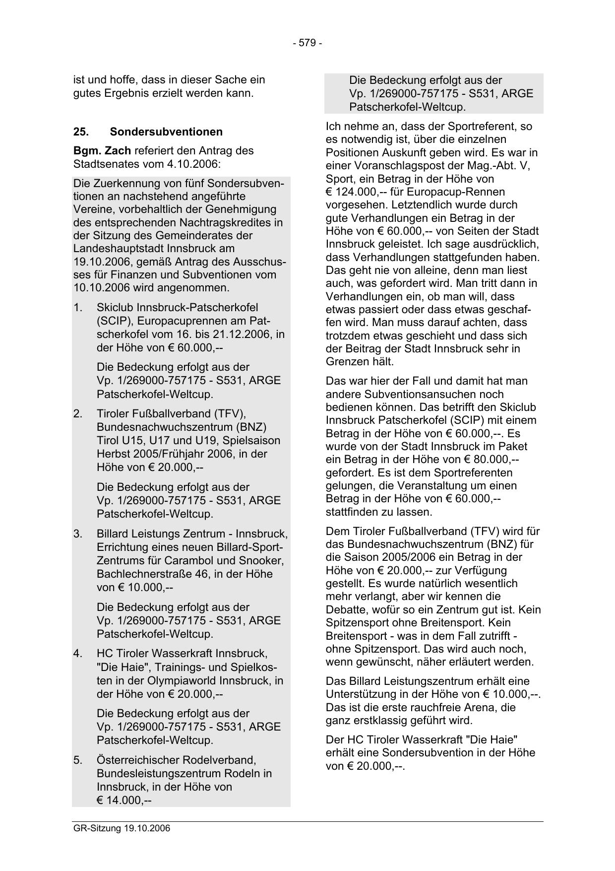 ein Betrag in der Höhe von € 80.000,-gefordert. Es ist dem Sportreferenten