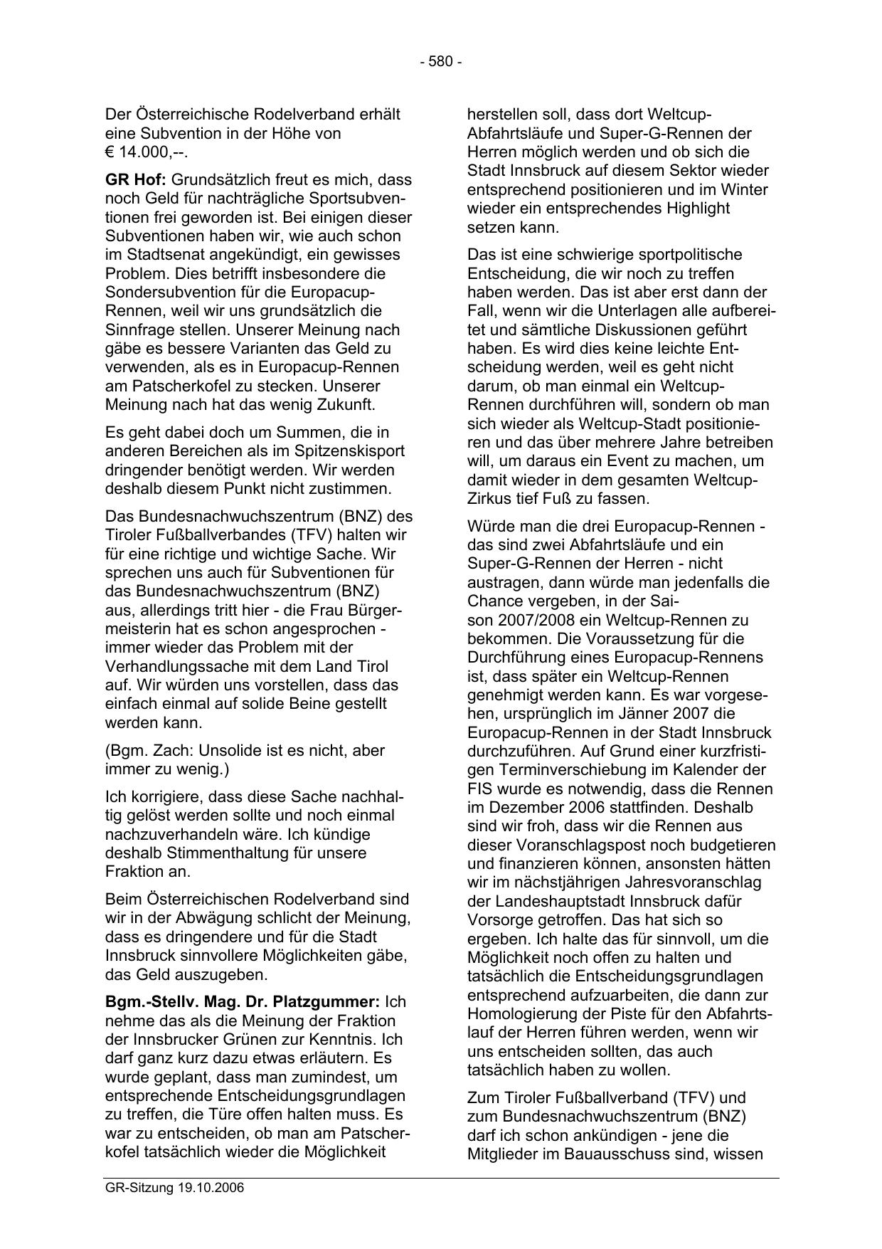 Bgm.-Stellv. Mag. Dr. Platzgummer: Ich