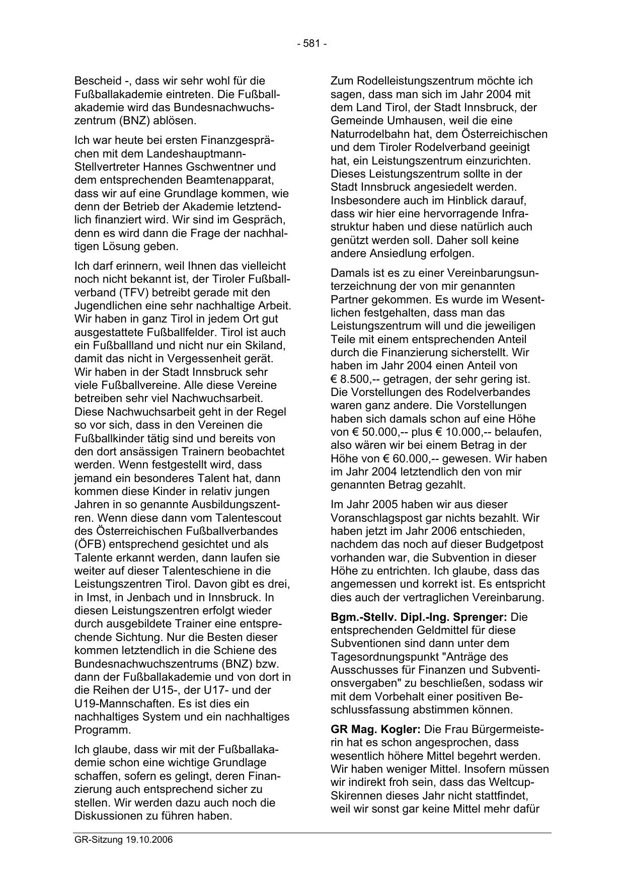 GR-Sitzung 19.10.2006